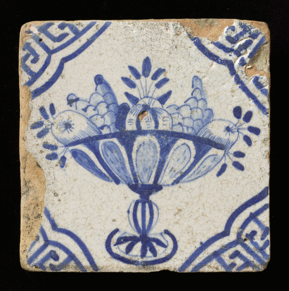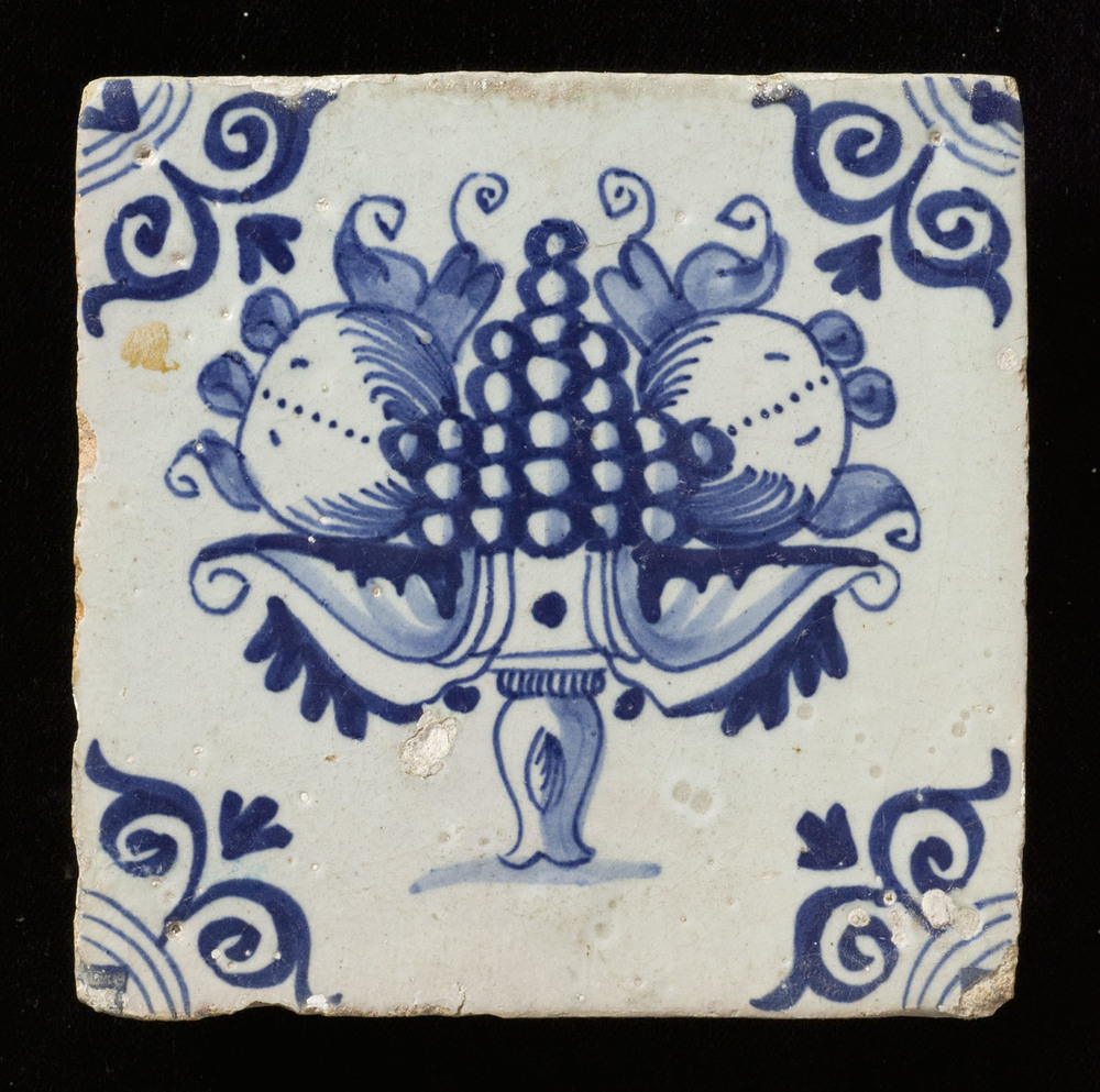 Tegel in tinglazuur, voorstellende fruitschaal gemaa...