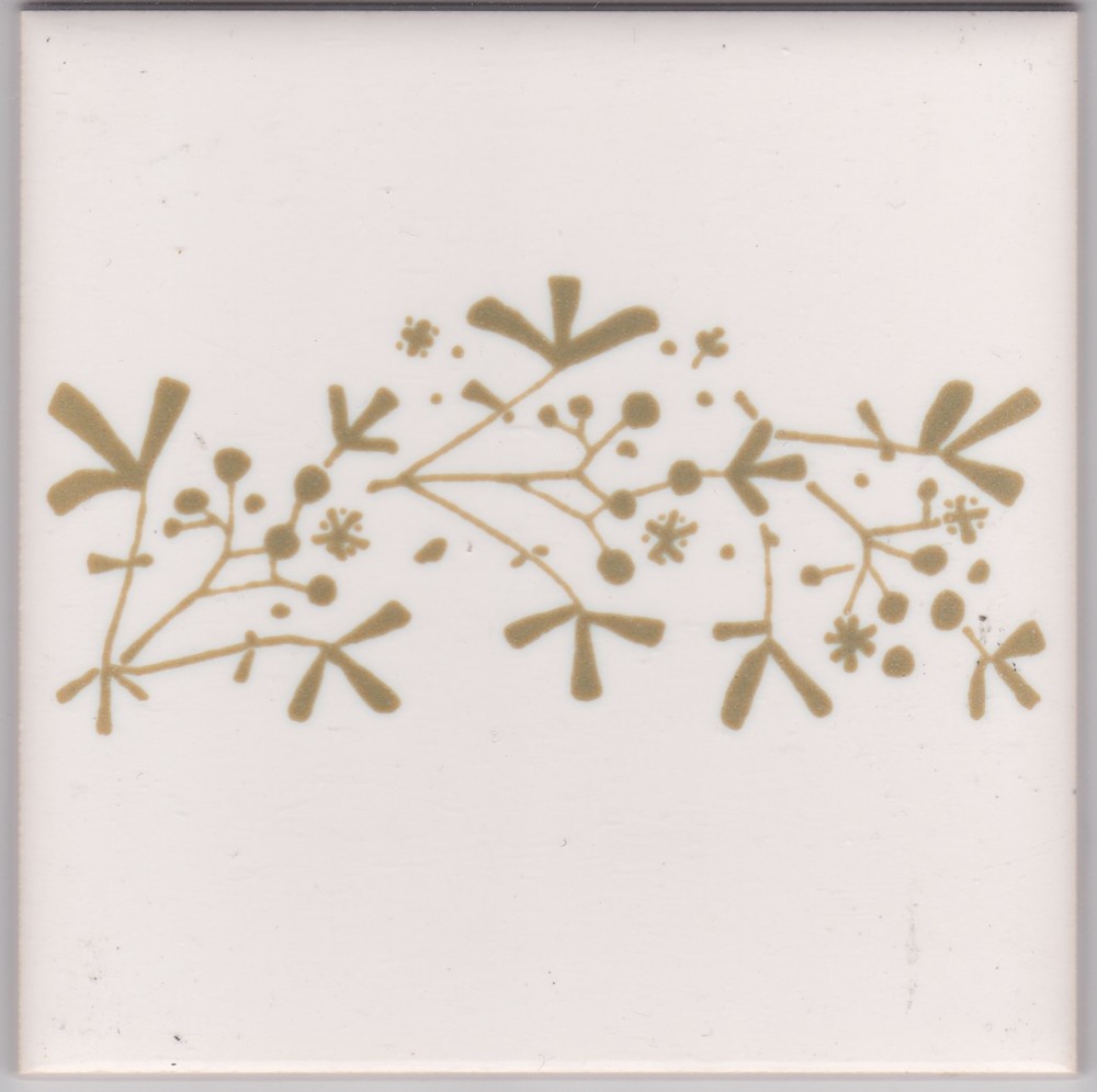 Tegel in zeefdruk, met voorstelling: decor Elderflow...