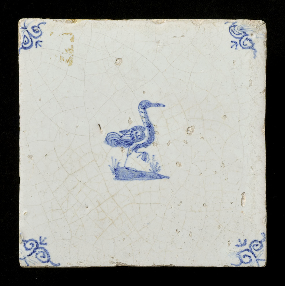 tegel van keramiek met tinglazuur, voorstellende: sp...