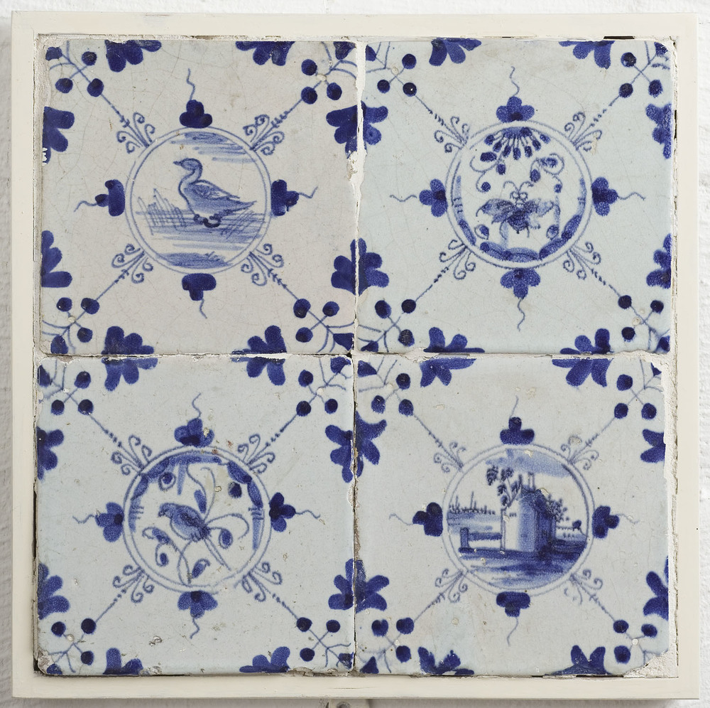 tegel van keramiek met tinglazuur, voorstellende: De...