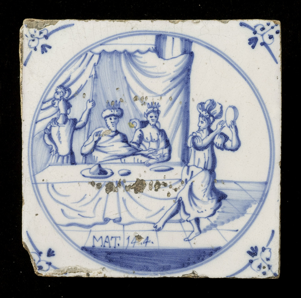 Tegel in tinglazuur, voorstellende mat.14:6, De doch...