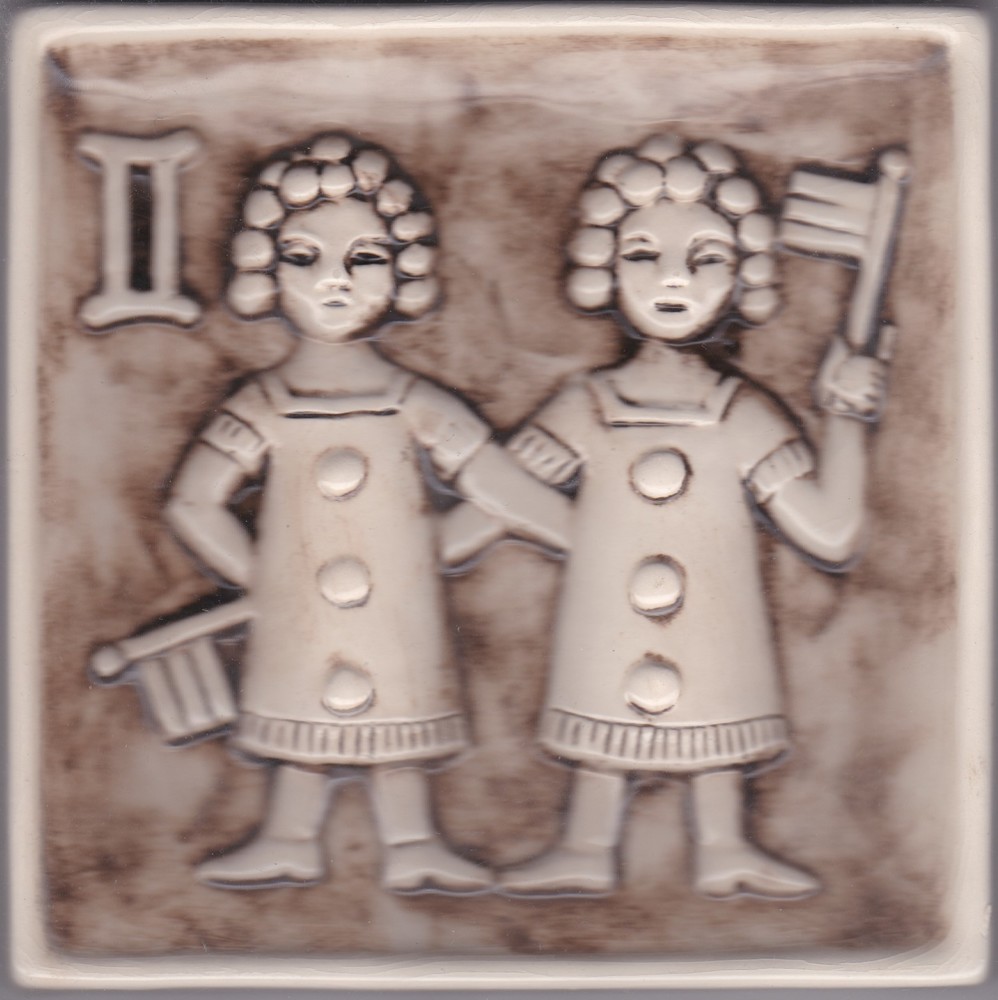 Tegel in reliëf, met voorstelling: sterrenbeeld twee...