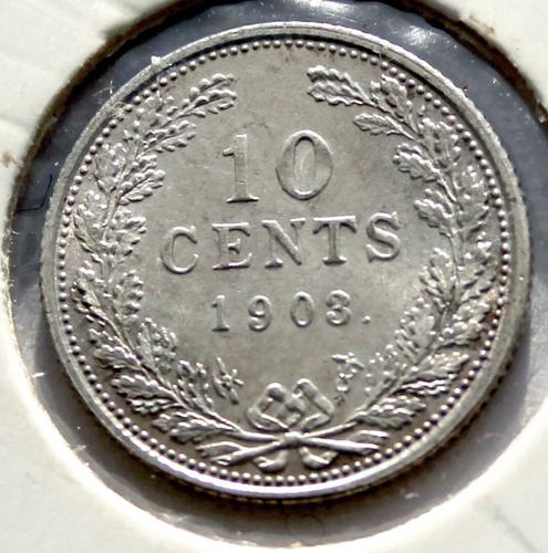 Zilveren Nederlandse betaalmunt, 10 Cents, (dubbeltj...