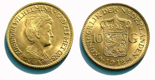 Gouden Nederlandse betaalmunt, 10 Gulden, 1912 - 191...