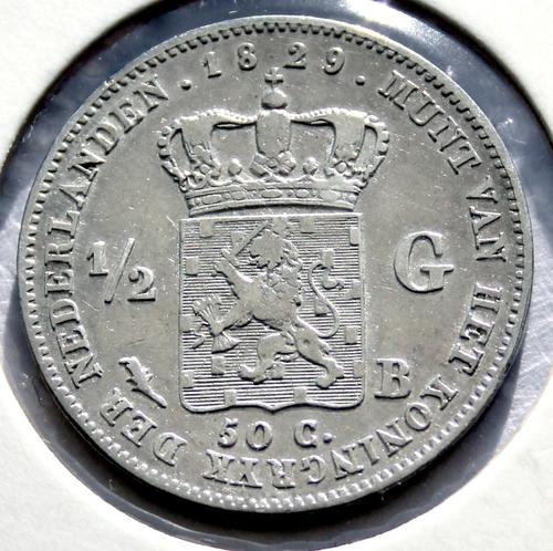Zilveren Nederlandse betaalmunt, ½ Gulden, 1829