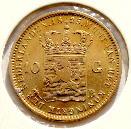 Gouden Nederlandse betaalmunt, 10 Gulden, 1825