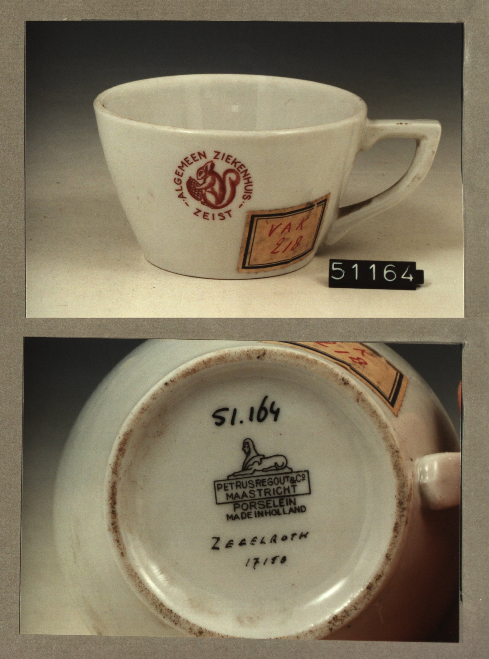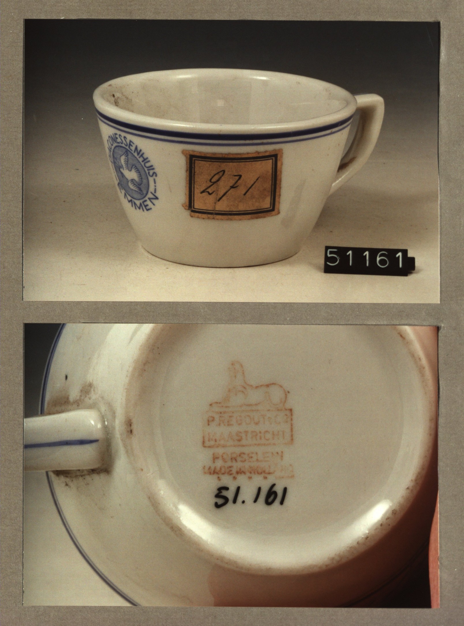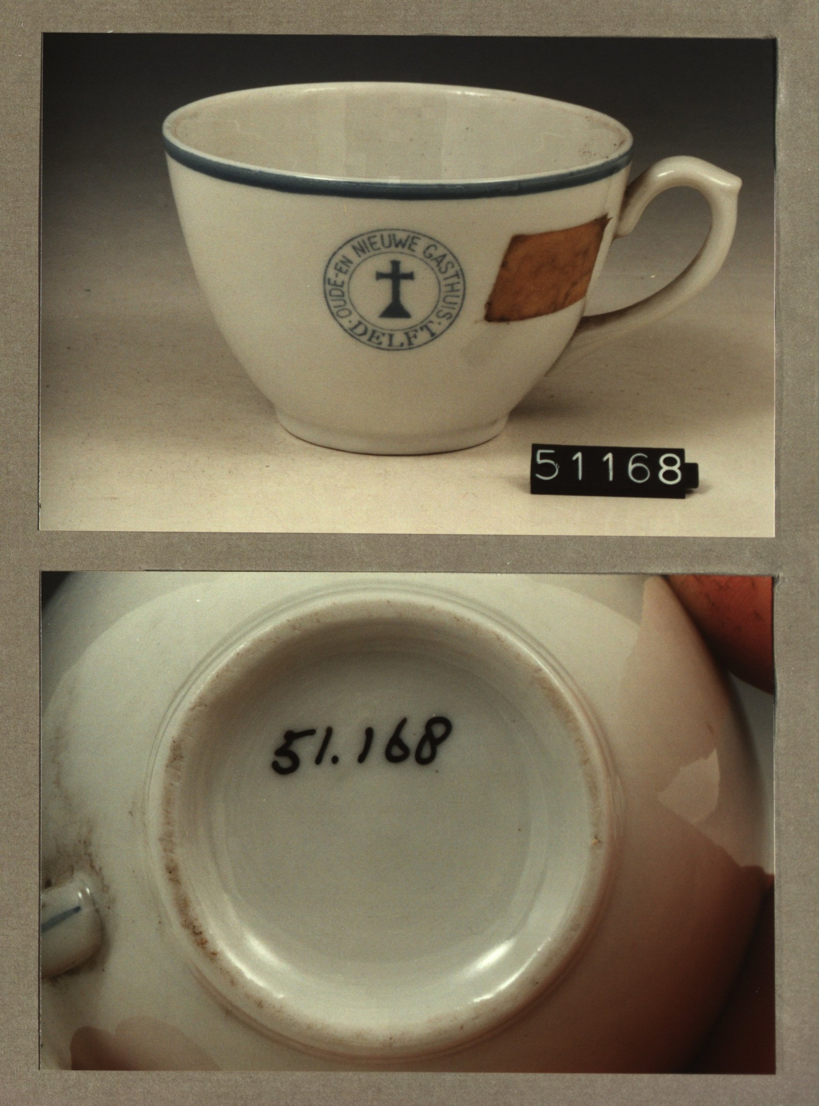 Kop met opschrift, model P met decor Diaconessenhuis...