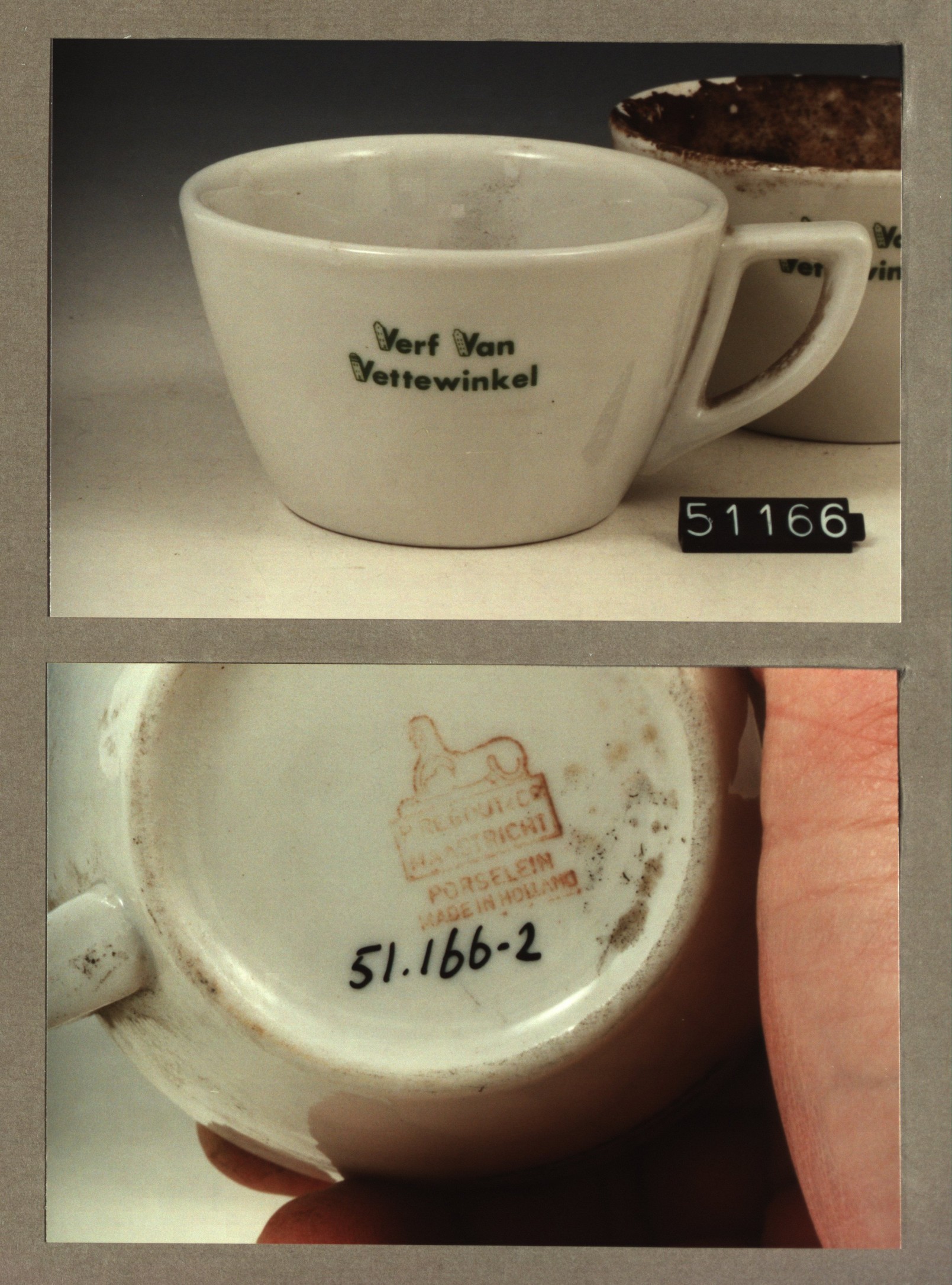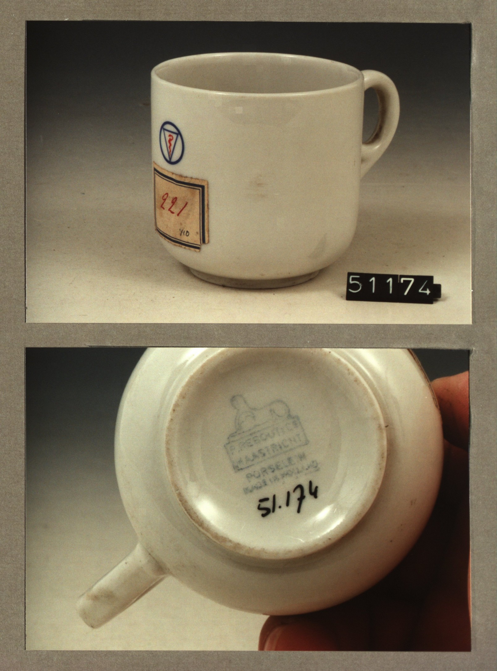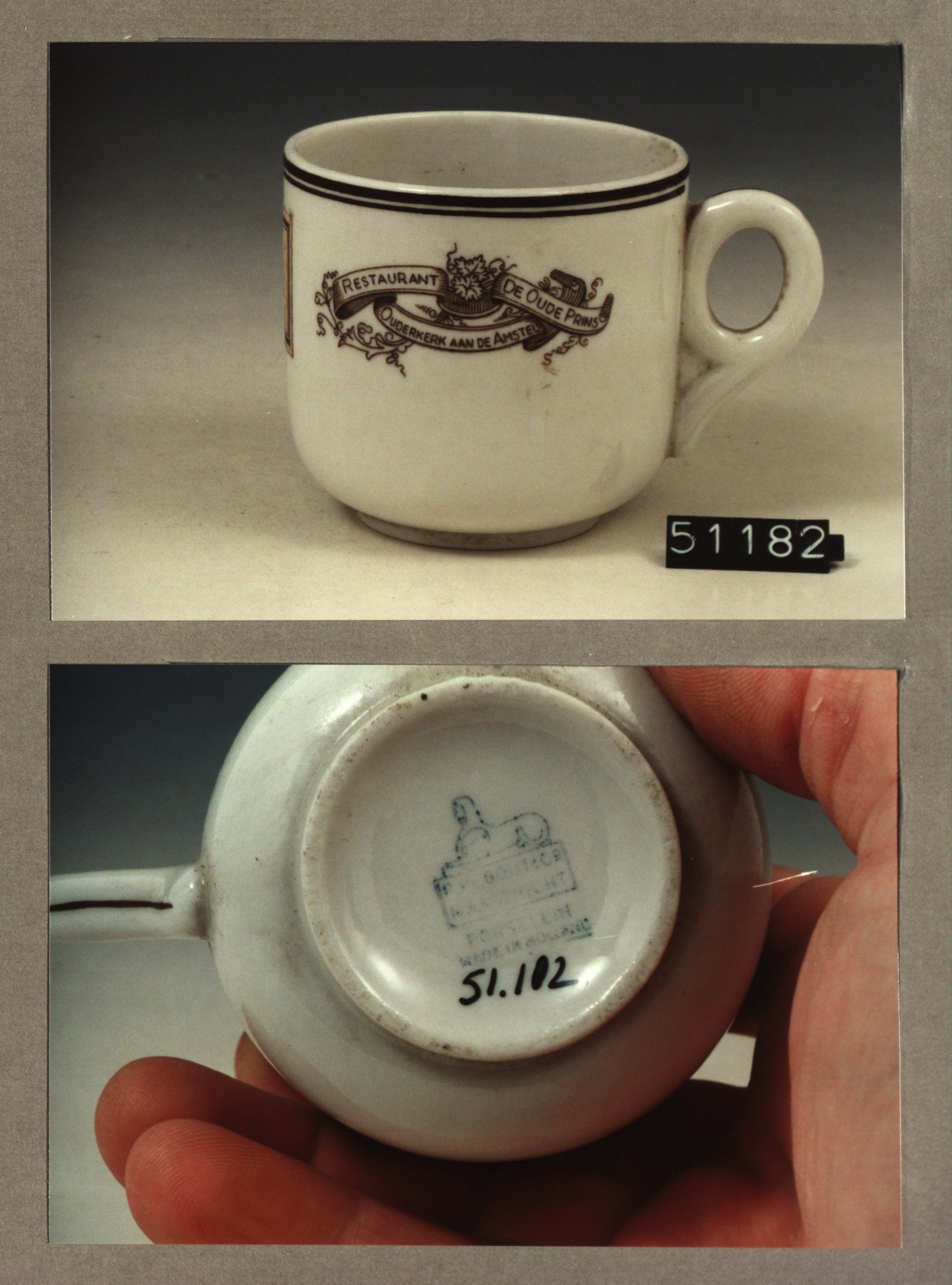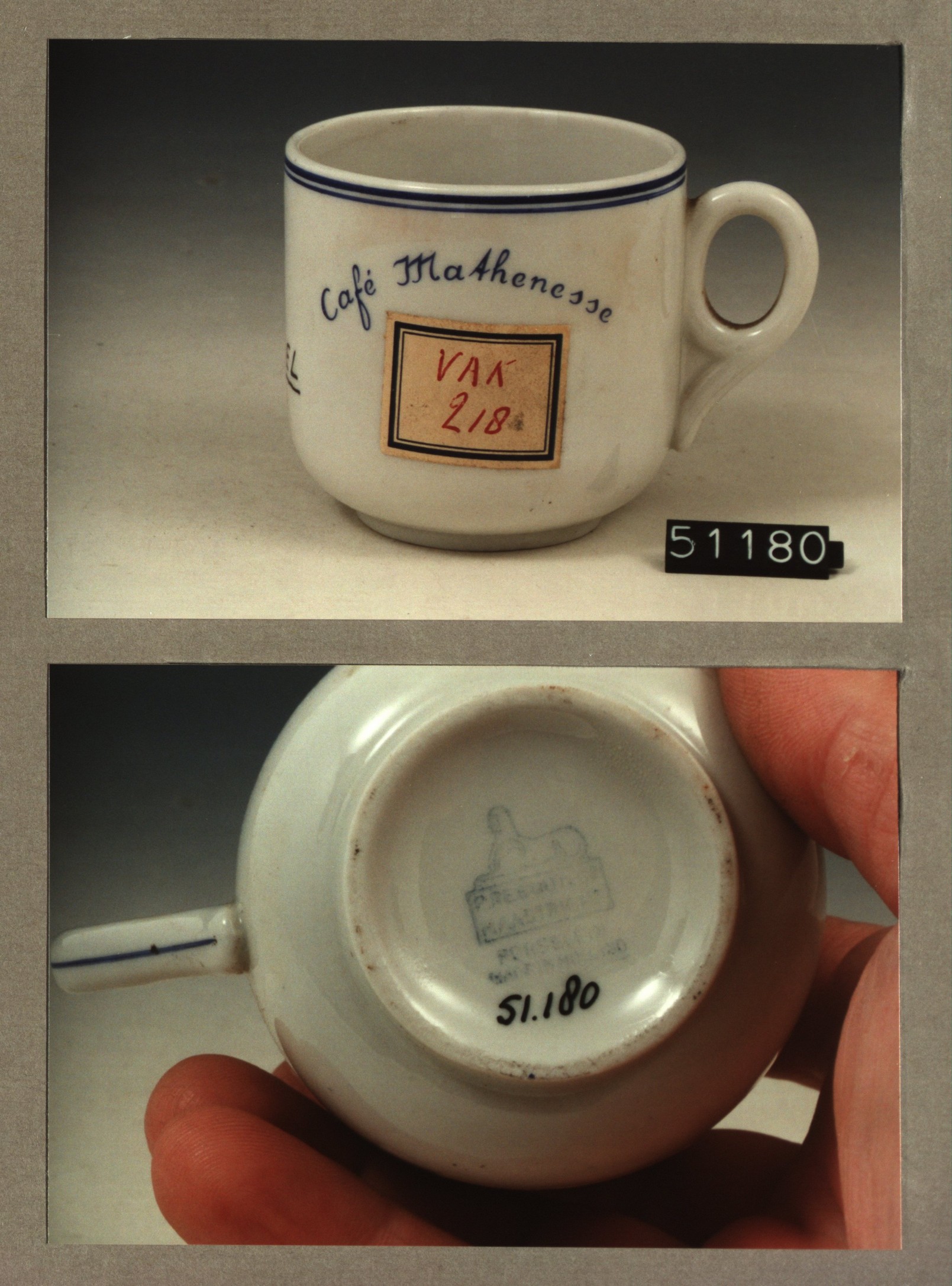 Kop met opschrift, model F met decor Cafe Mathenesse