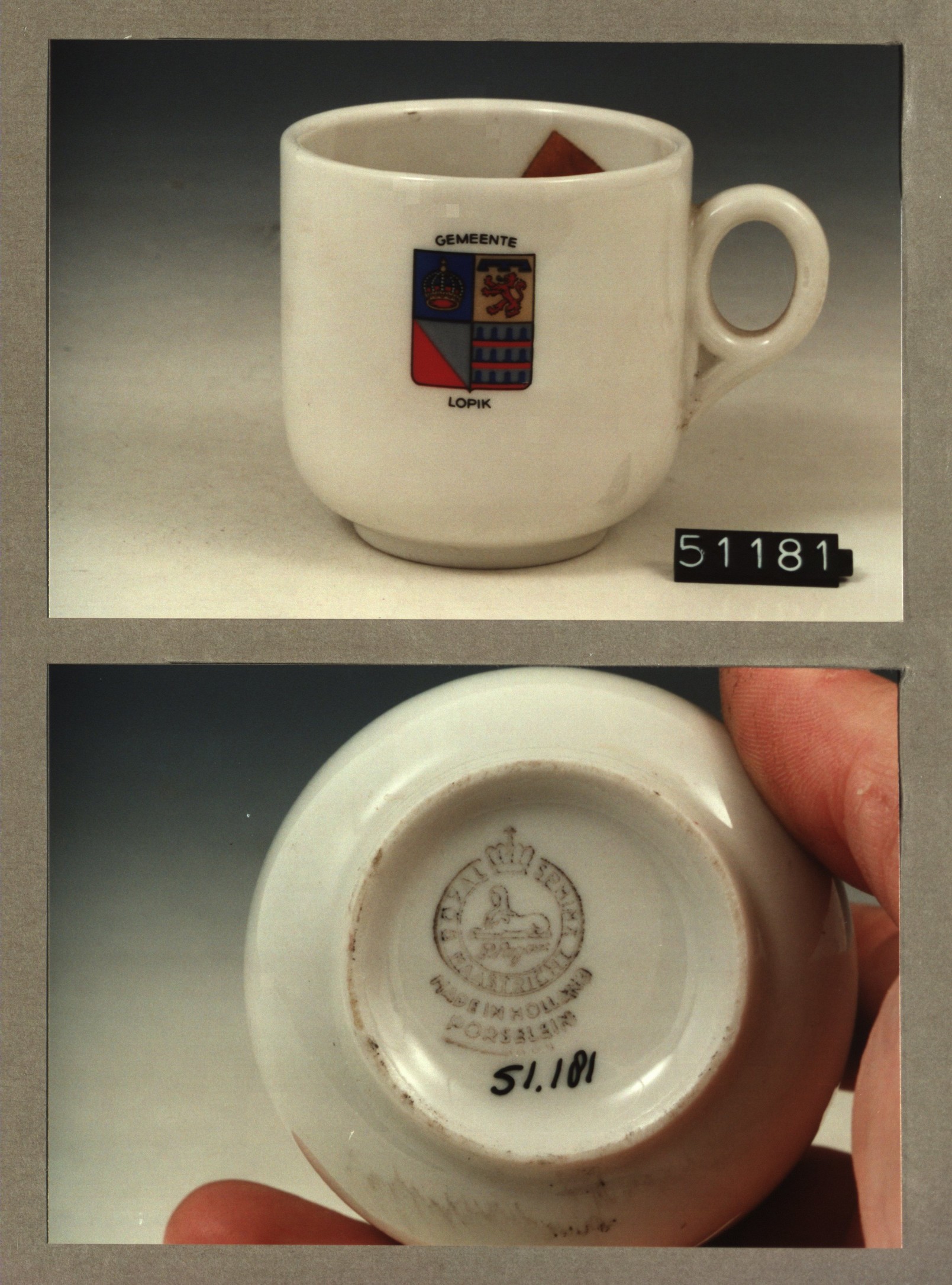 Kop met opschrift, model F2 met decor Gemeente Lopik