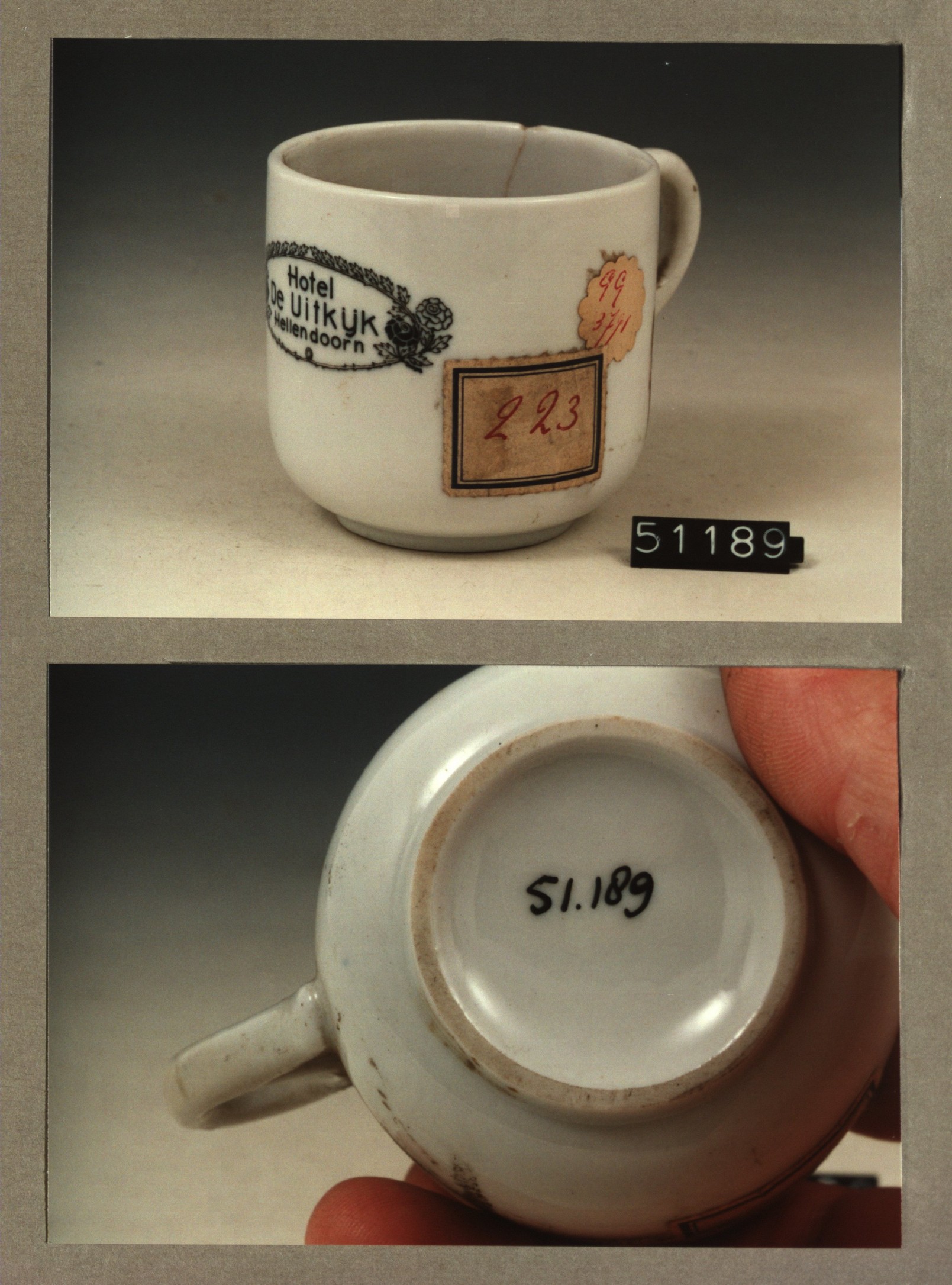 Kop met opschrift, model F met decor Hotel De uitkij...