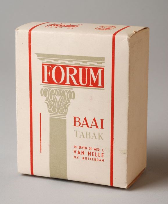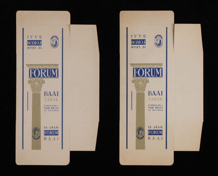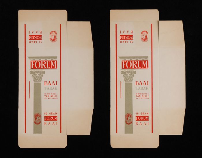 Doos, rood en grijs, FORUM BAAI TABAK, 50 GRAM, etal...