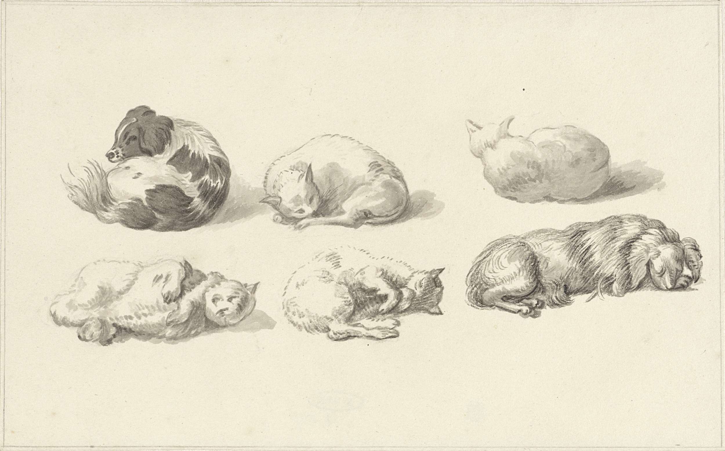 Studies van liggende honden en katten