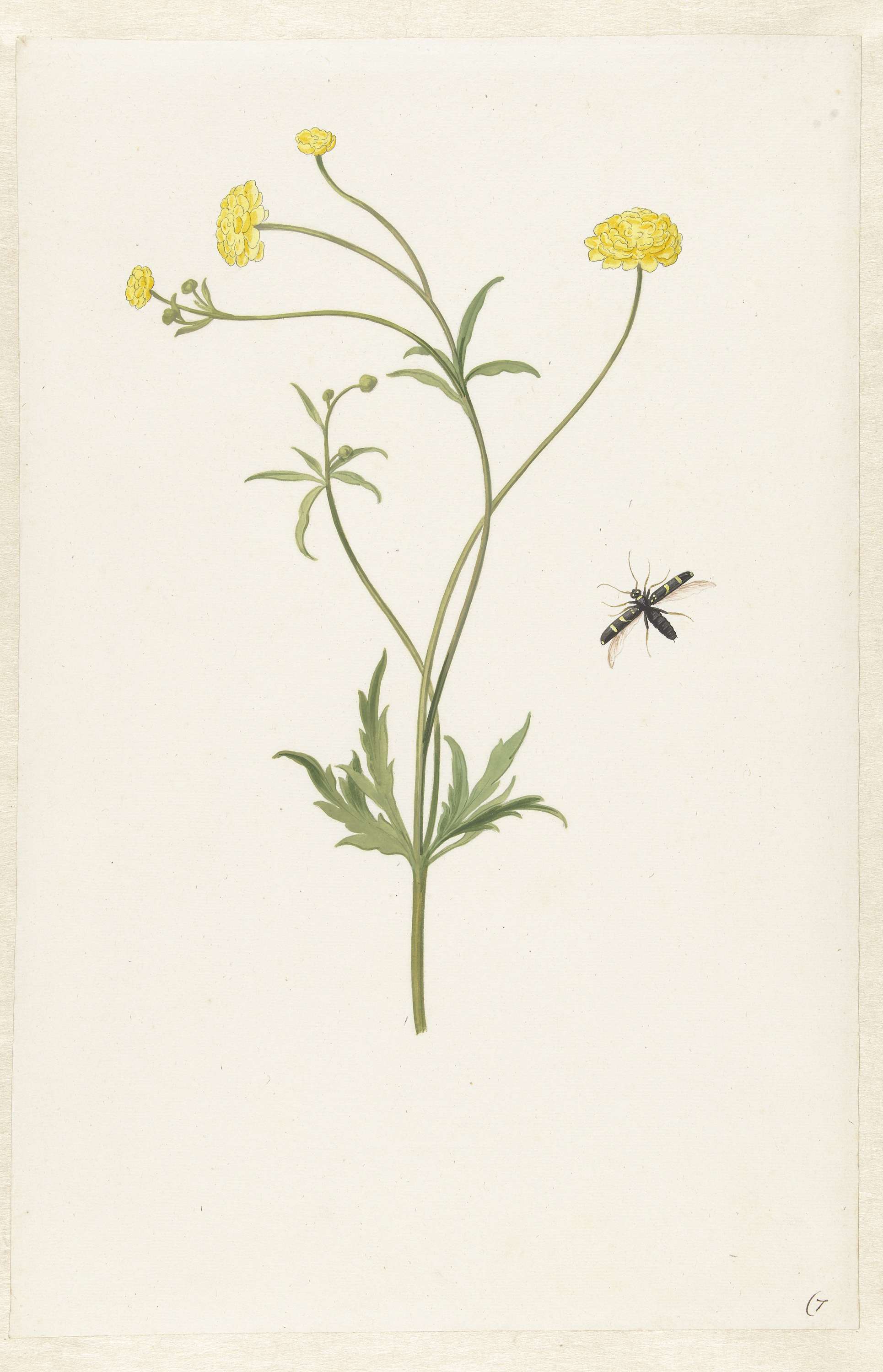 Dubbele gele ranonkel en insekt