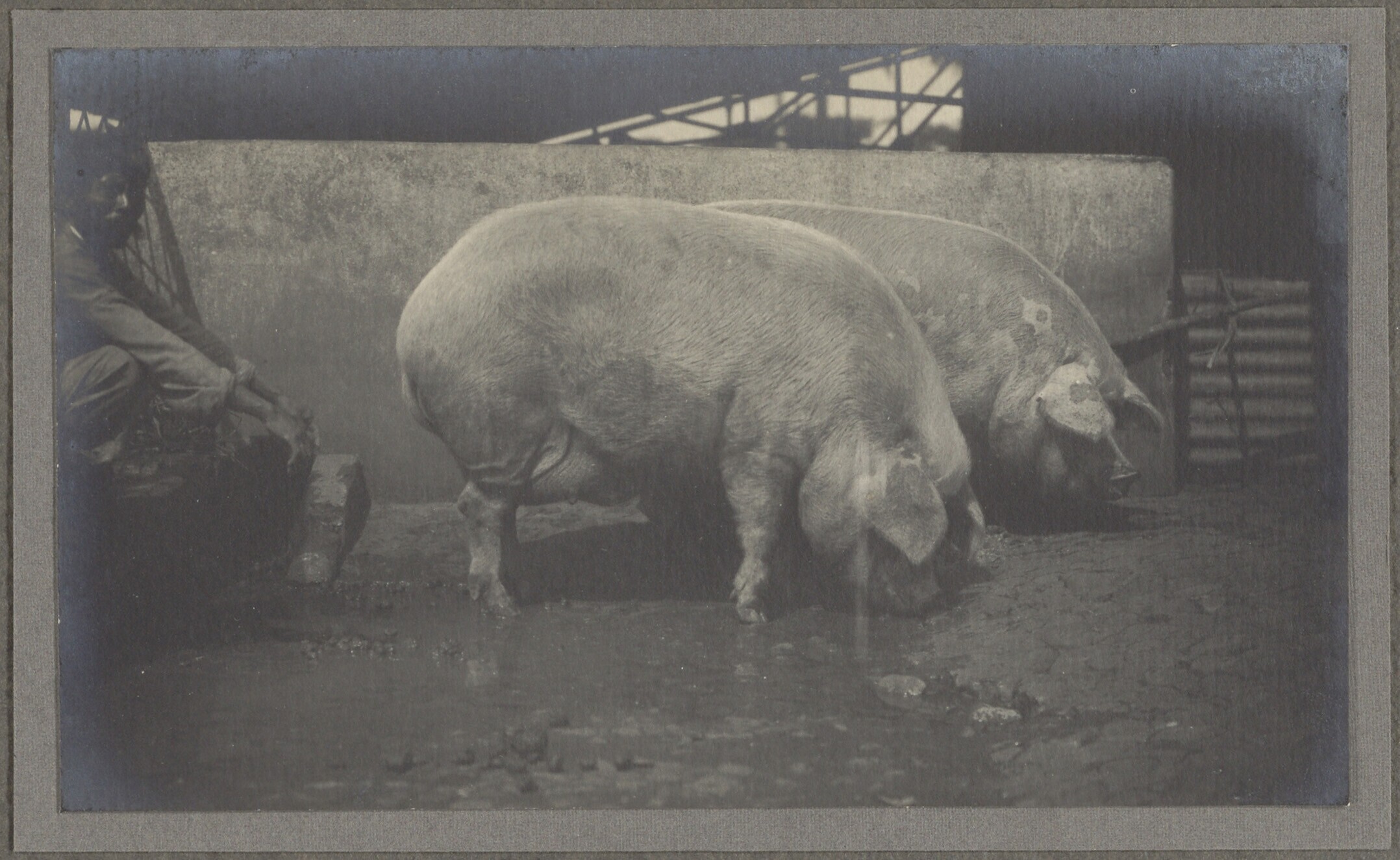 Twee varkens in de stal bij psychiatrisch ziekenhuis...