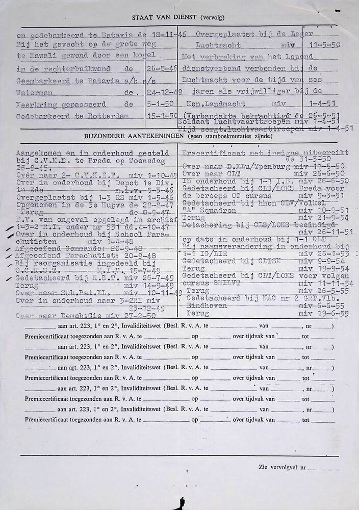 Staat van dienst H. van Beest.