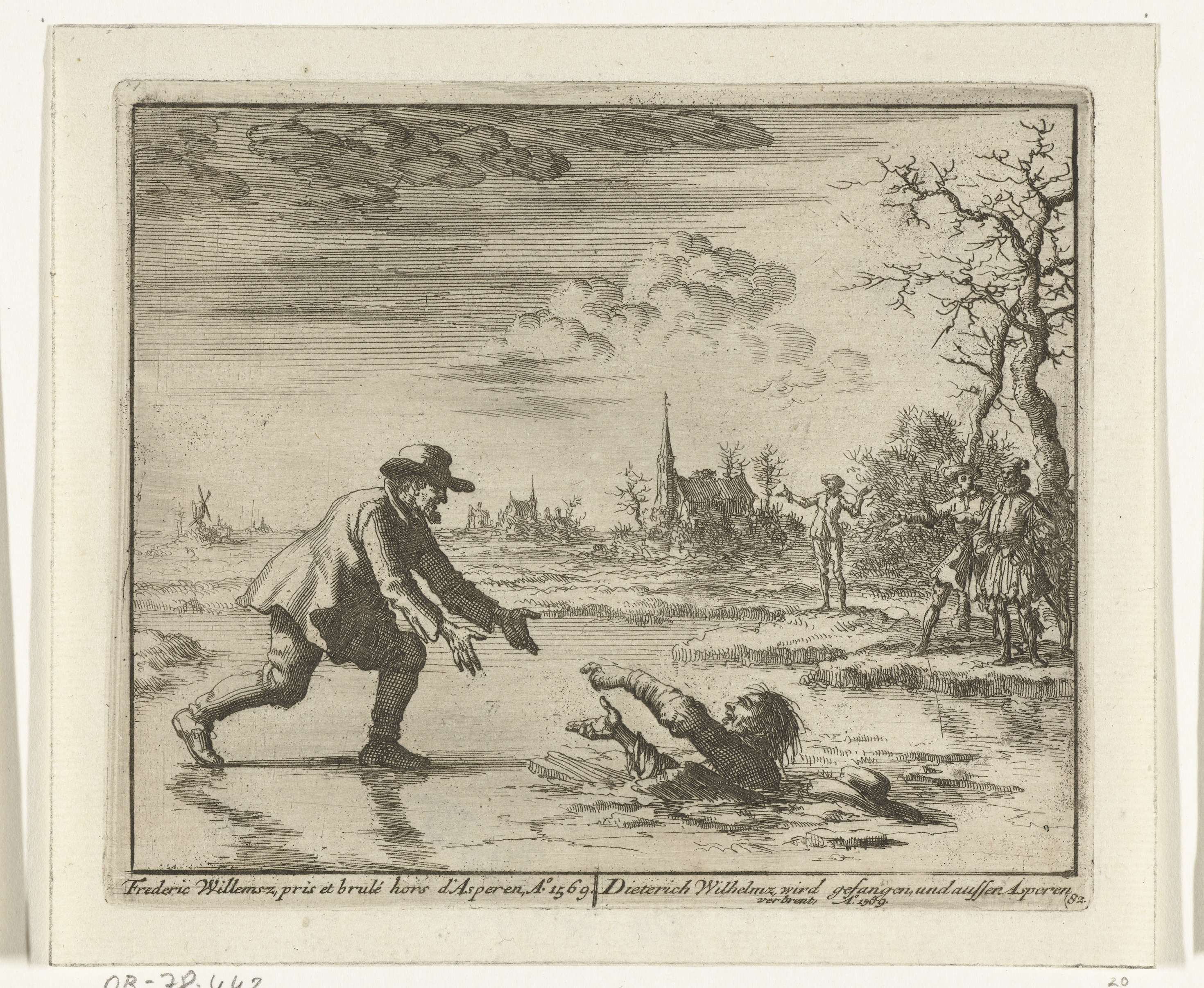 Dirk Willemsz. redt zijn vervolger uit het ijs bij A...
