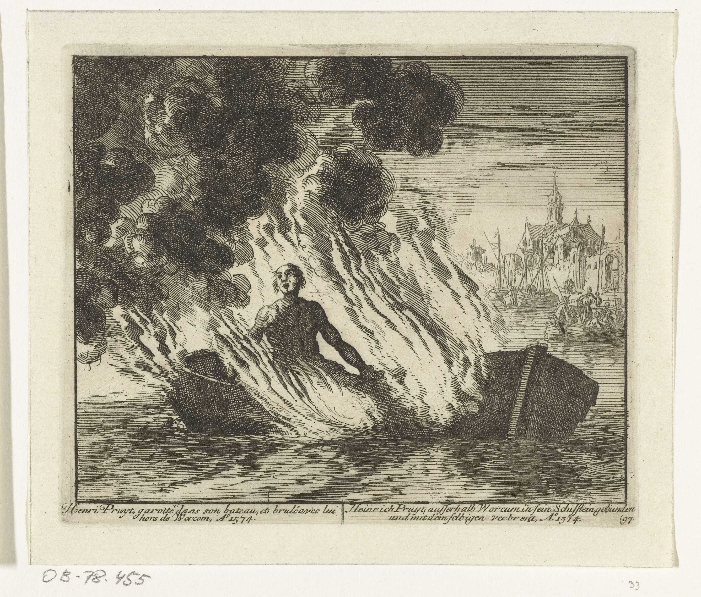 Hendrik Pruyt te Workum in een schuit verbrand, 1574