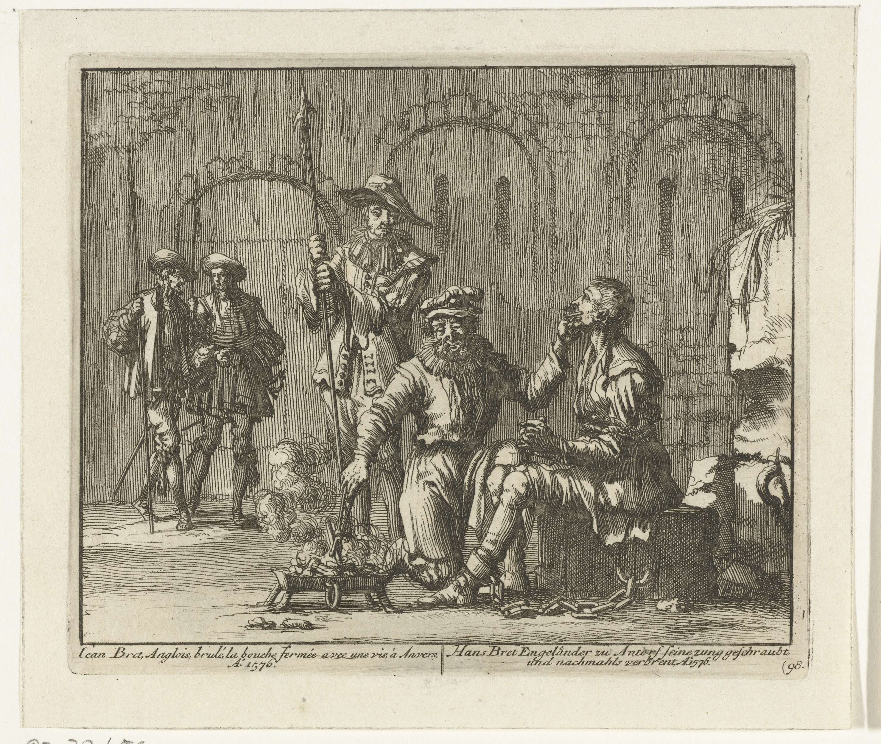 Aan Hans Bret wordt te Antwerpen de tong doorboord, ...
