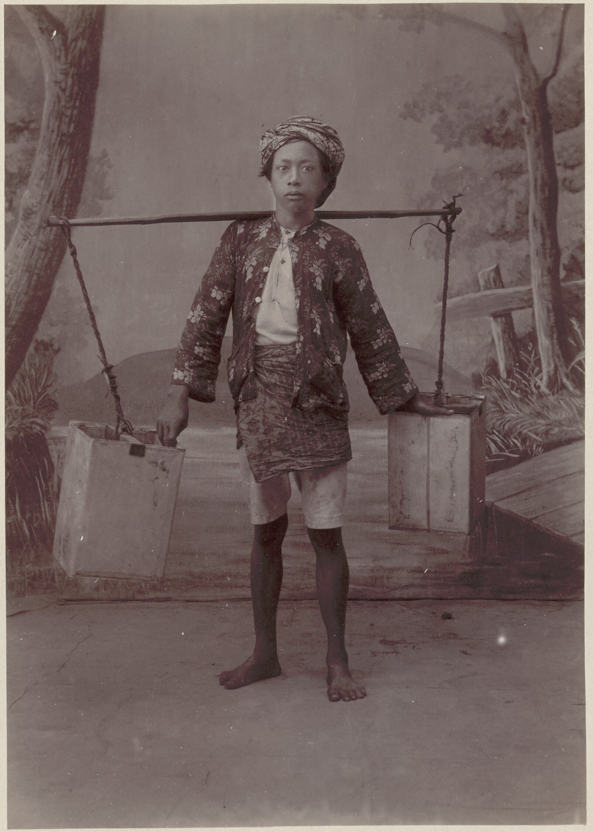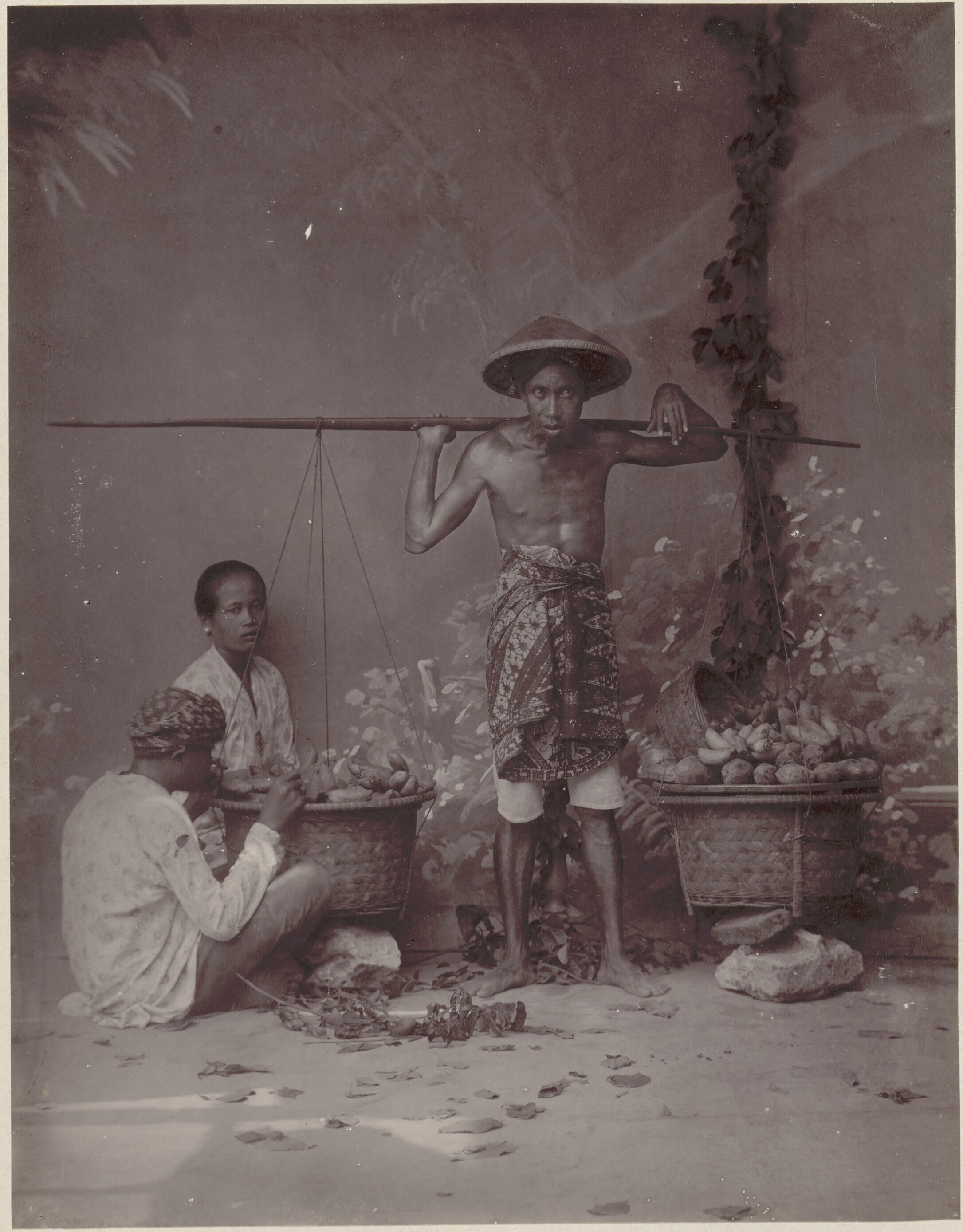 Portret van een vruchtenverkoper te Batavia