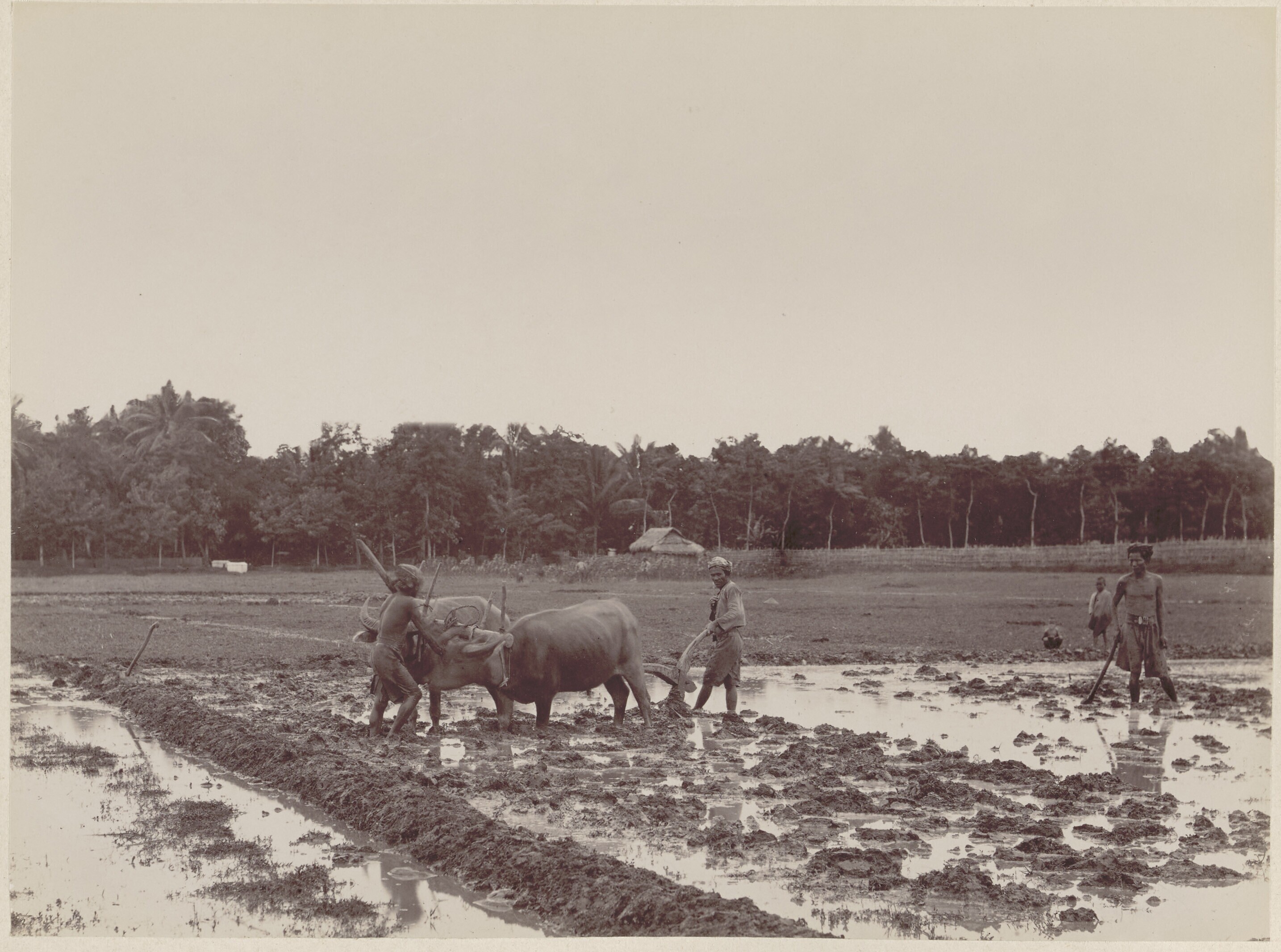 Een ploeg met karbouwen in de Tegal