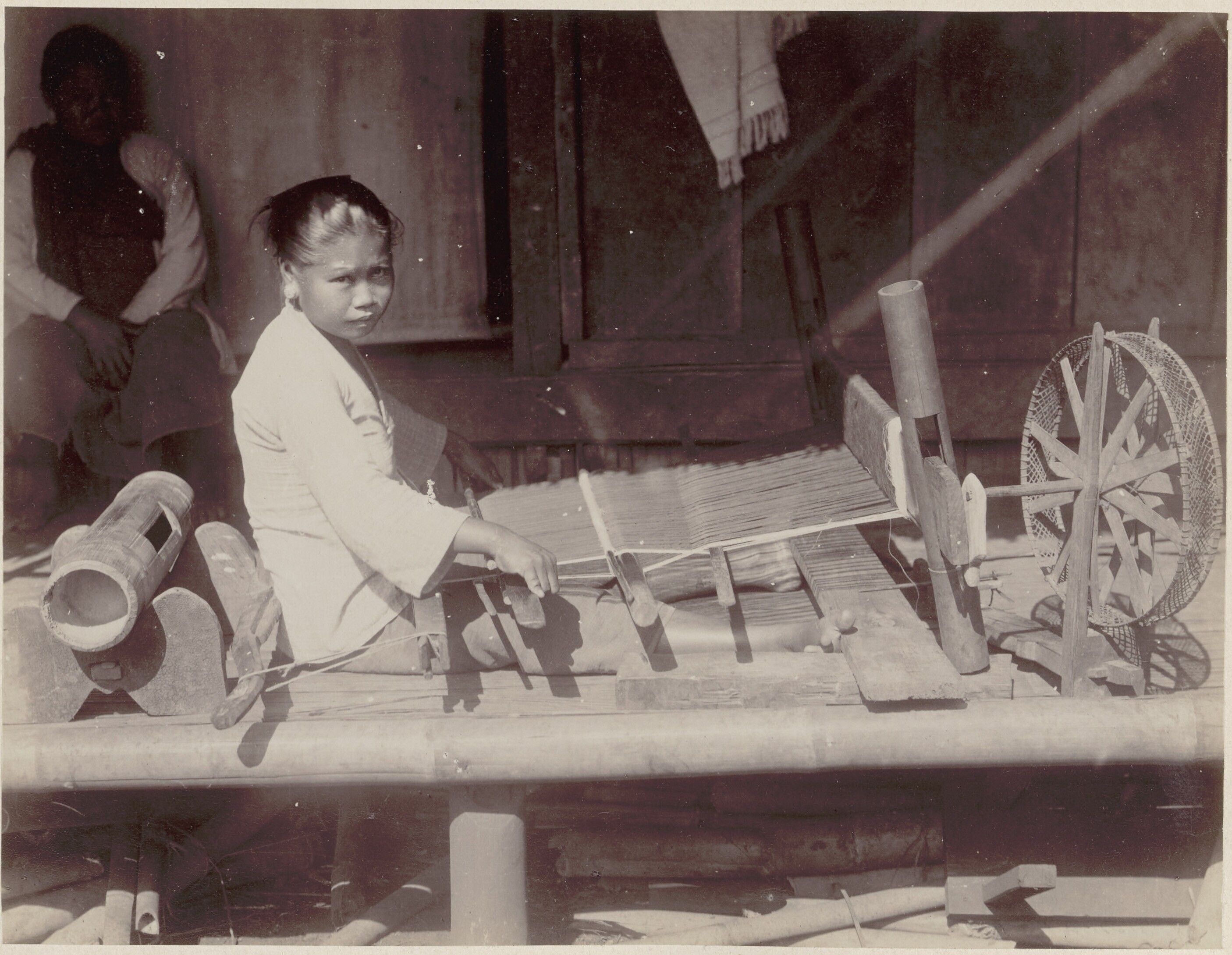 Portret van een weefster te Batavia