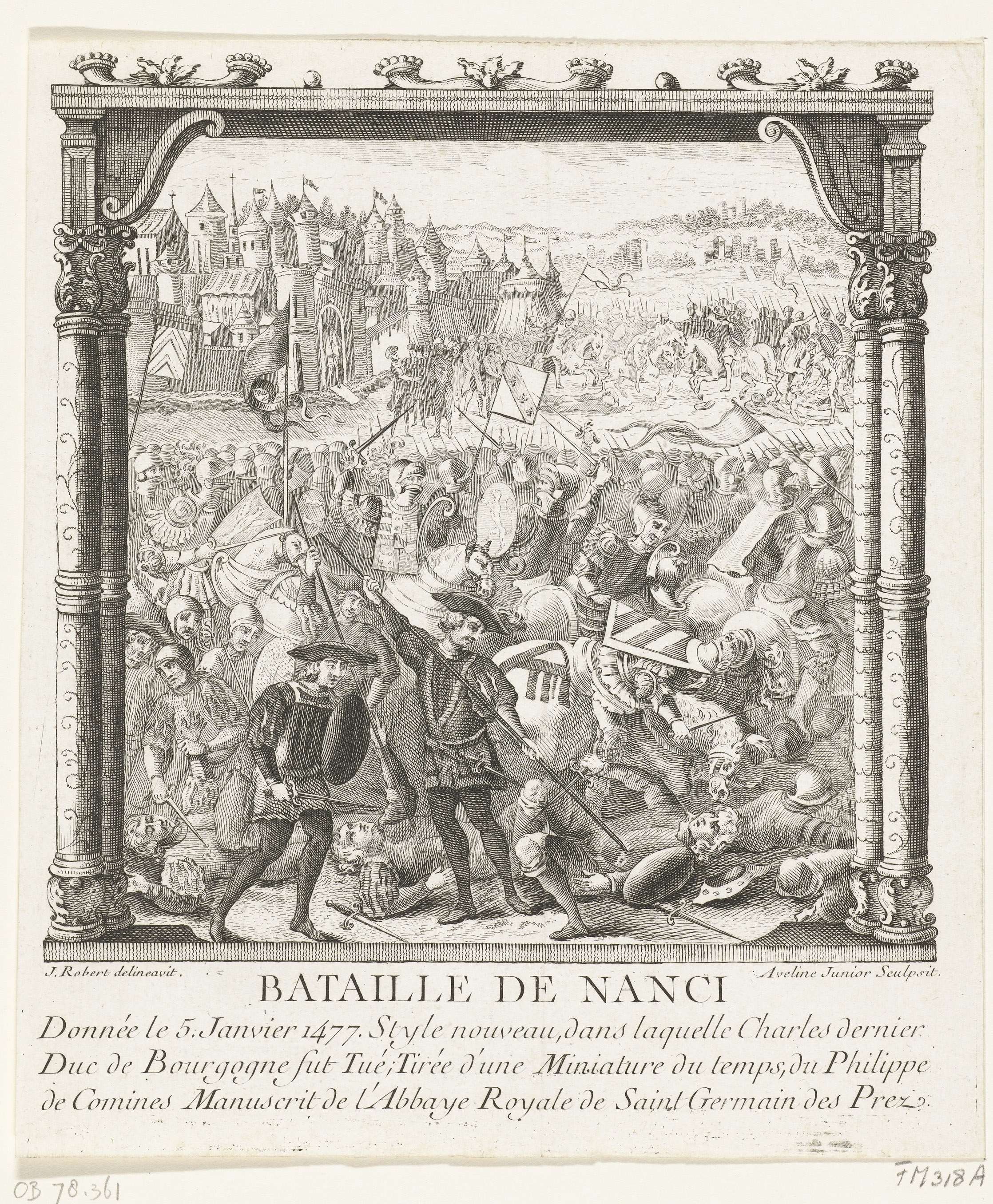 Miniatuur van de dood van Karel de Stoute in de slag...