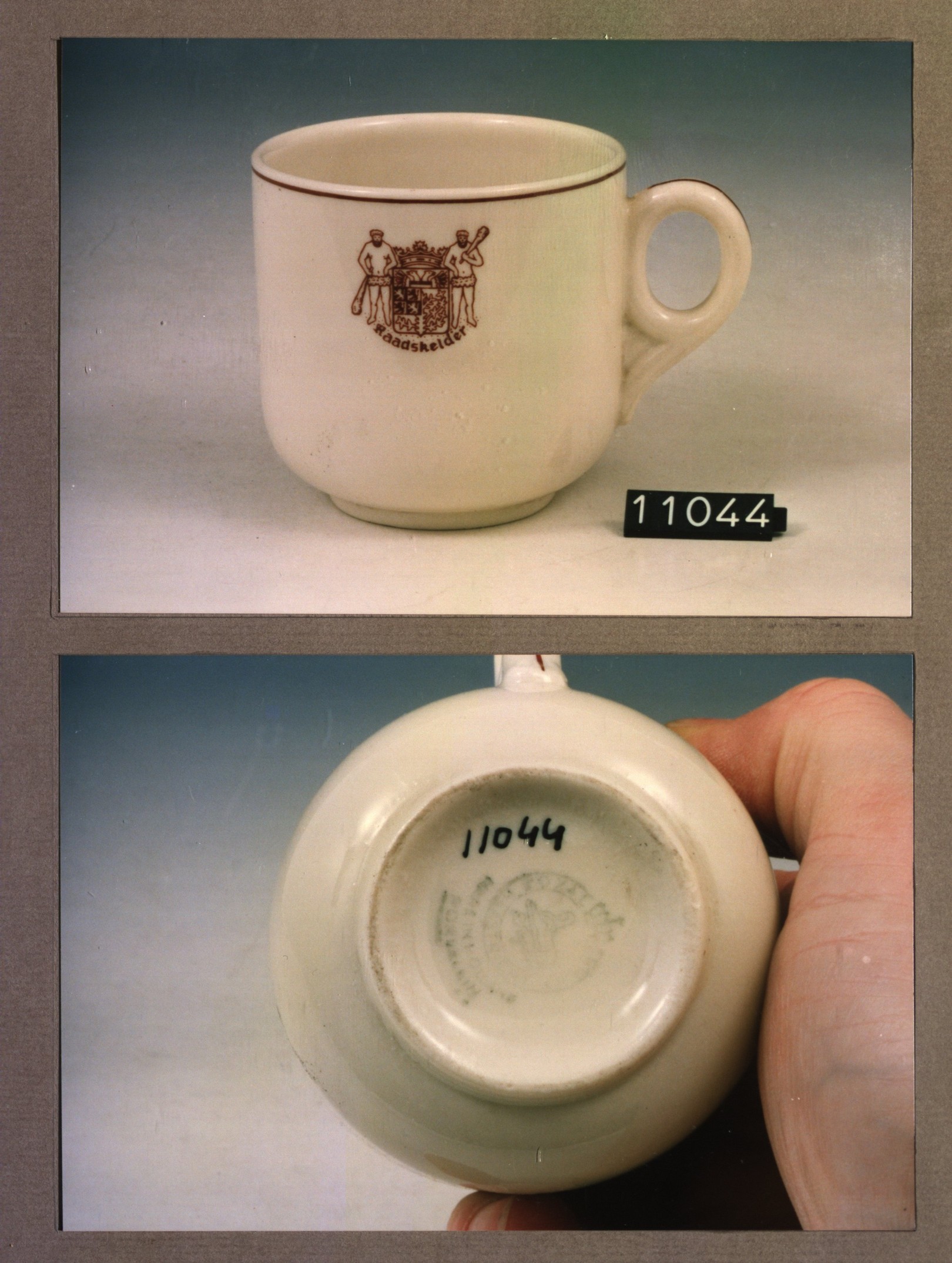 Kop met opschrift, model F met decor Raadskelder
