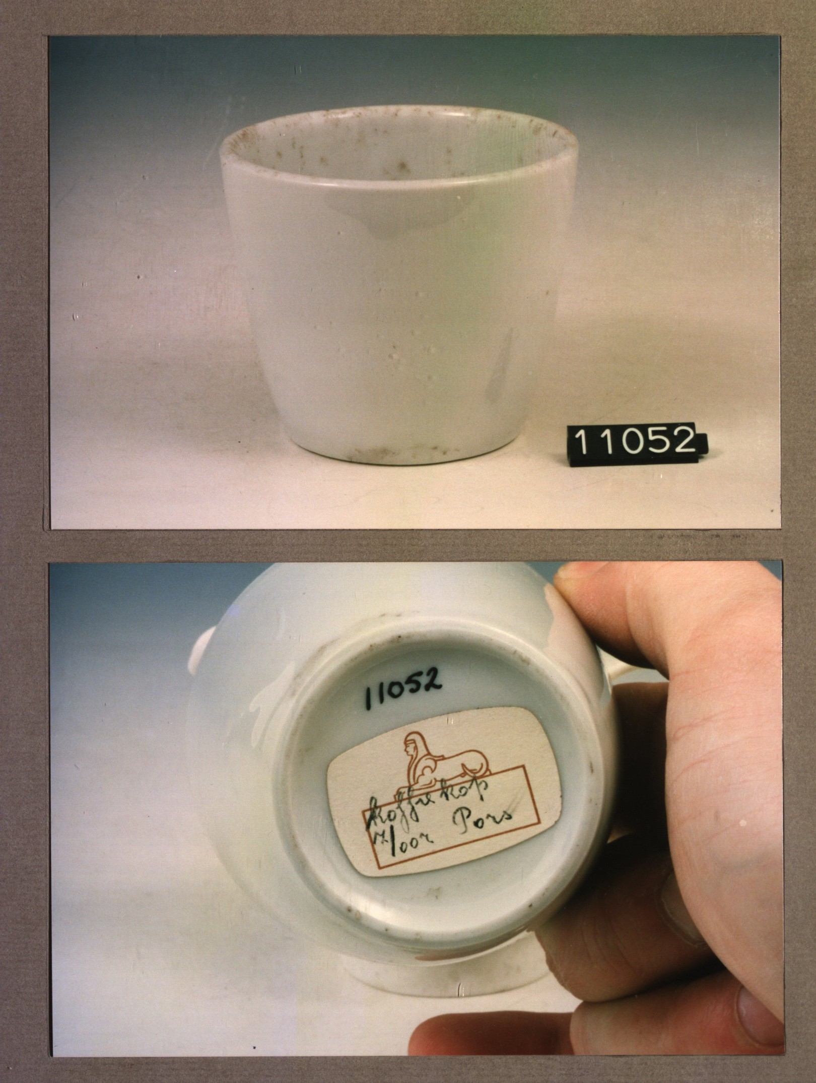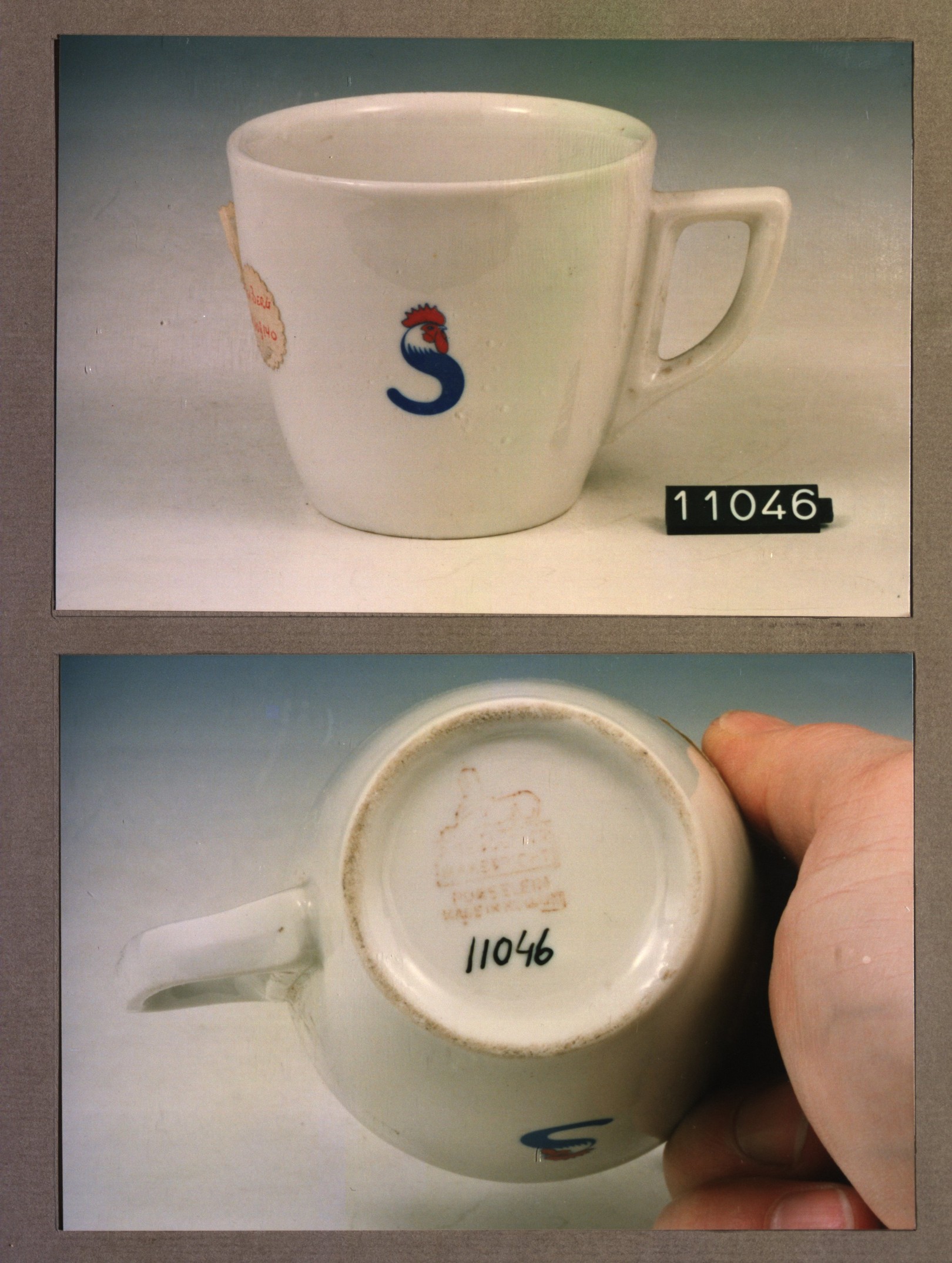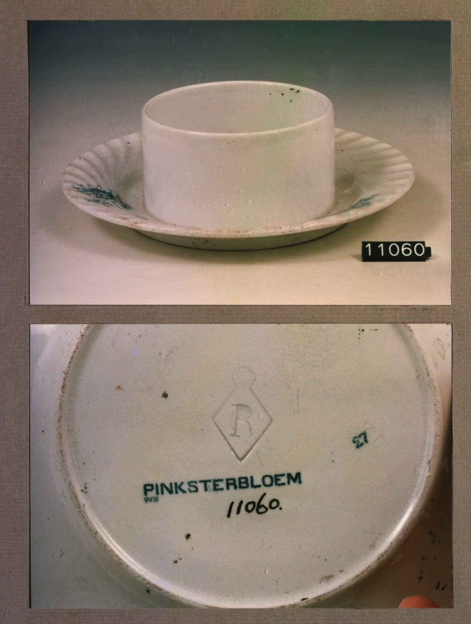 Kop met opschrift, model P 2 met decor Sluis S