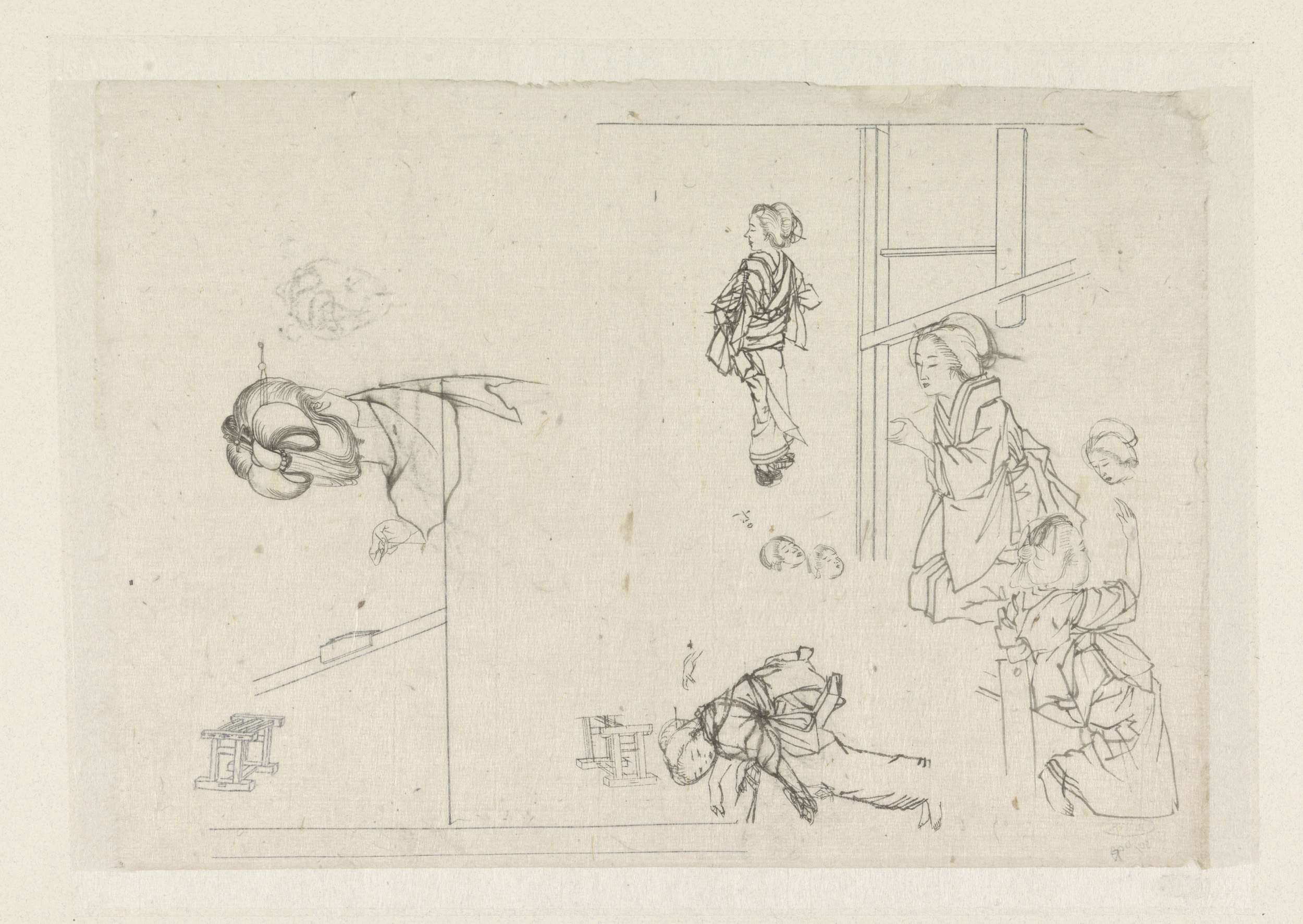 Schetsblad met vrouwenfiguren