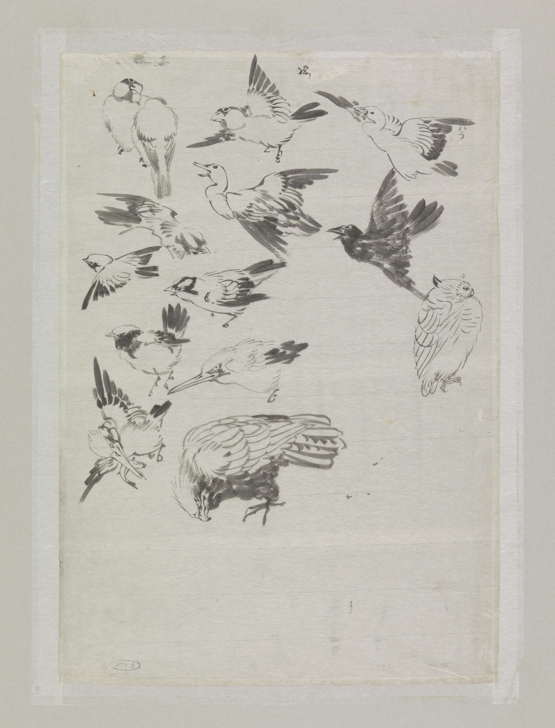 Schetsblad met vogelstudies