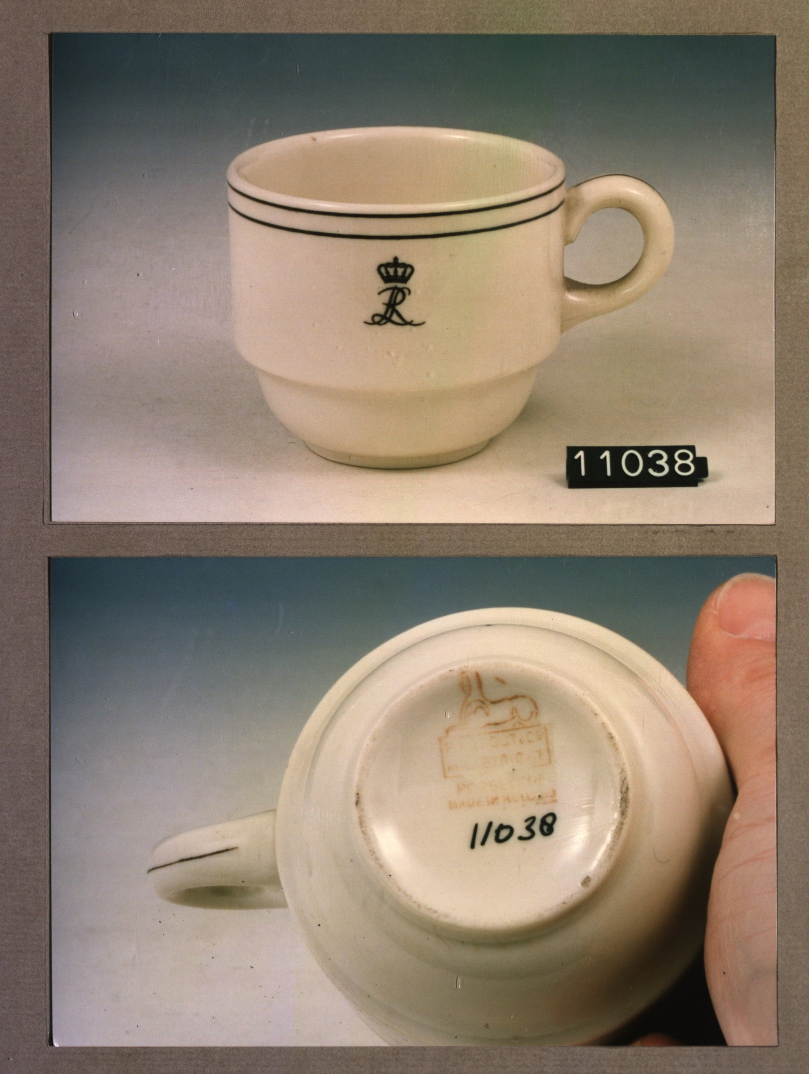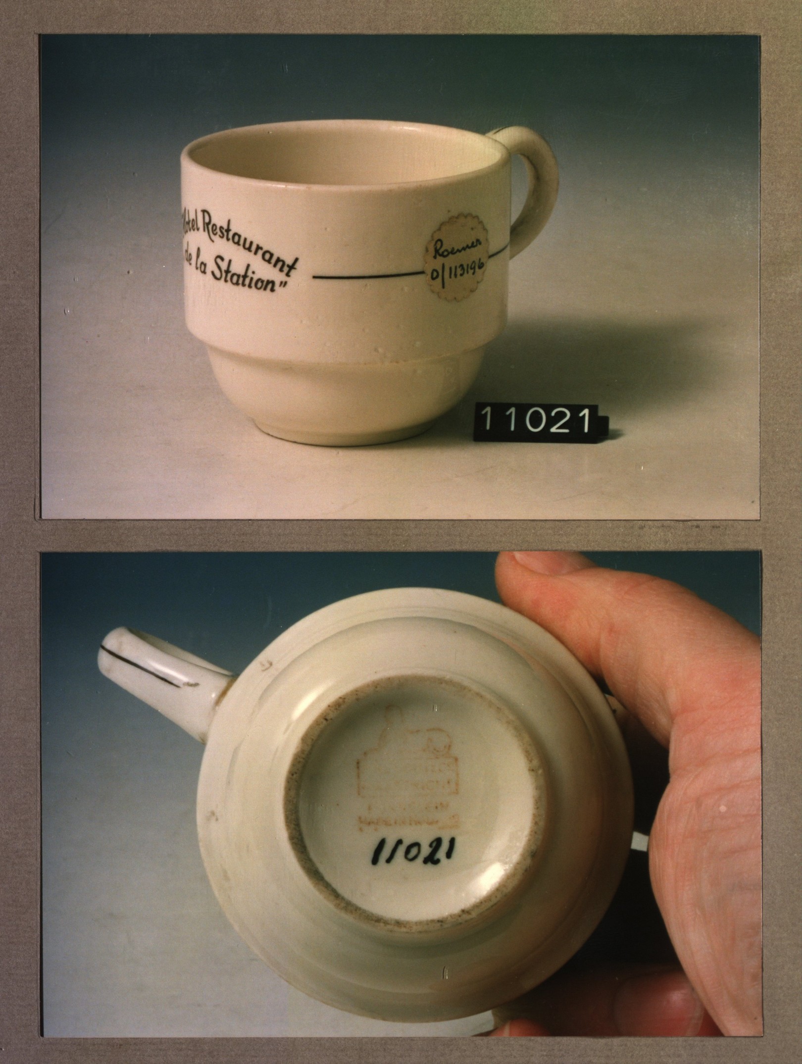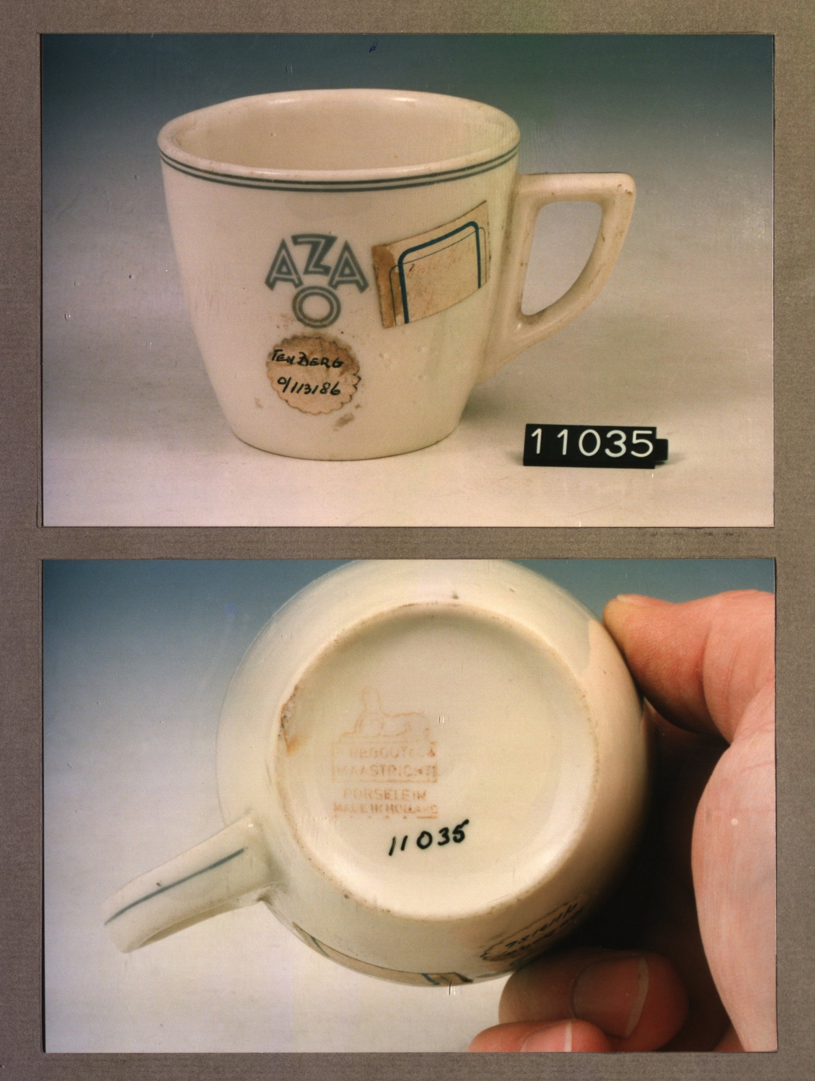 Kop met opschrift, model P 2 met decor N.v.h.N.