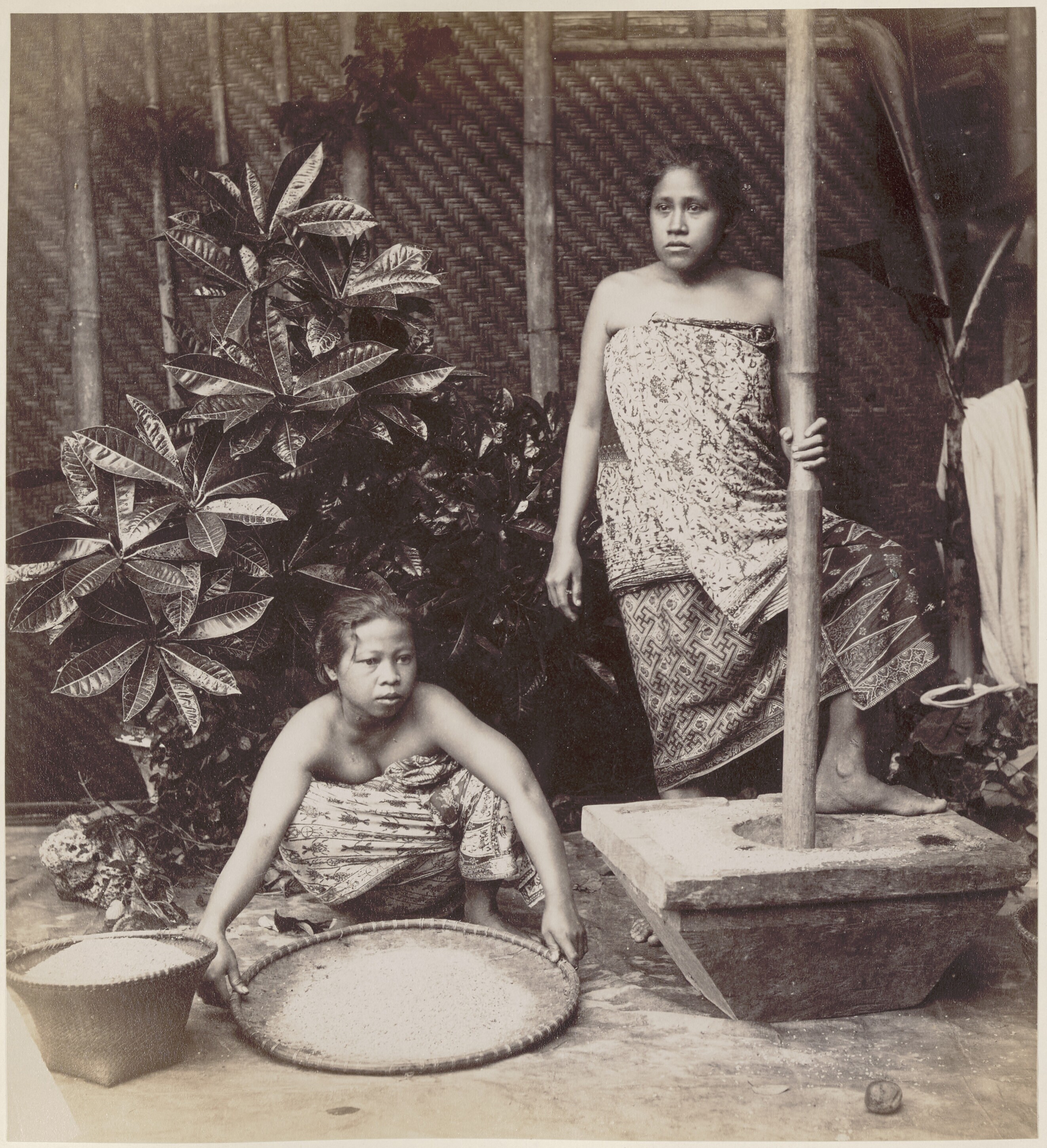 Javaanse vrouwen aan het rijst stampen