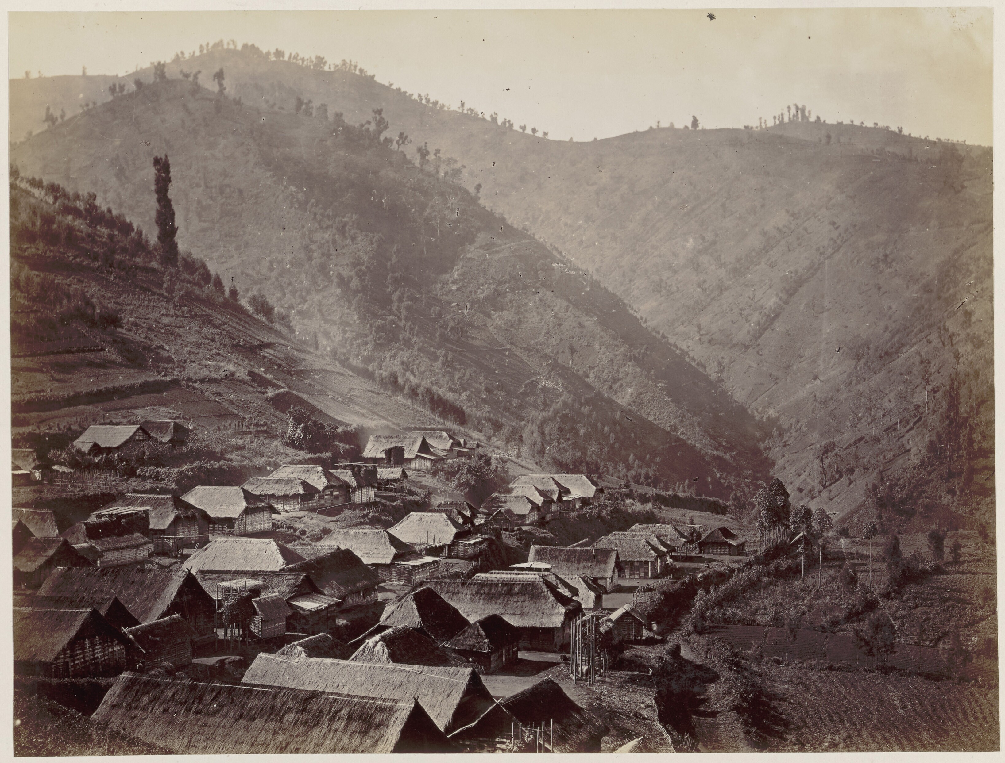 Gezicht over een dorp in het Tenggergebergte bij Tosari