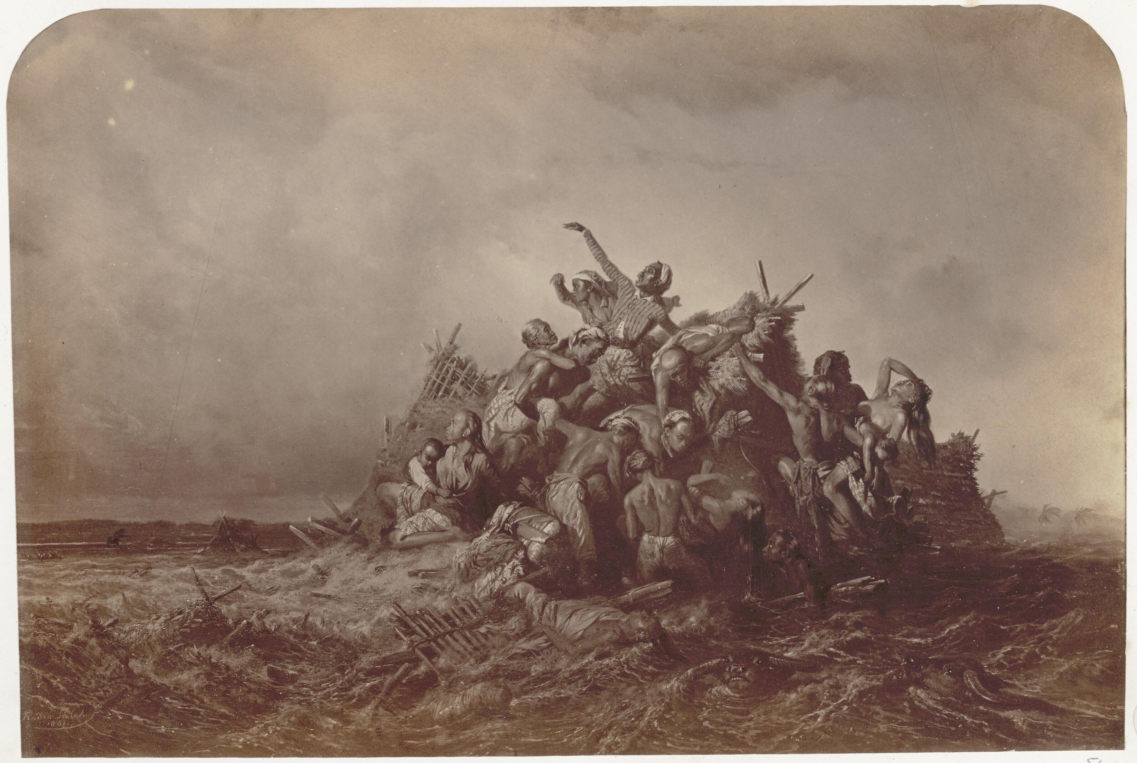 Het schilderij 'Overstroming op Java' van de kunstsc...