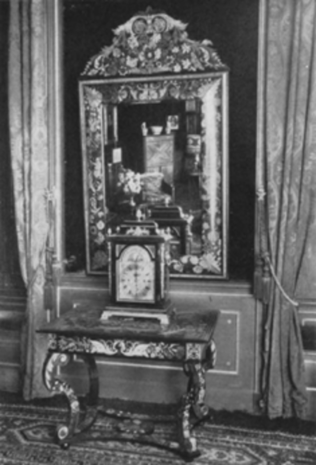 Een set meubelen bestaande uit een tafel, een spiege...