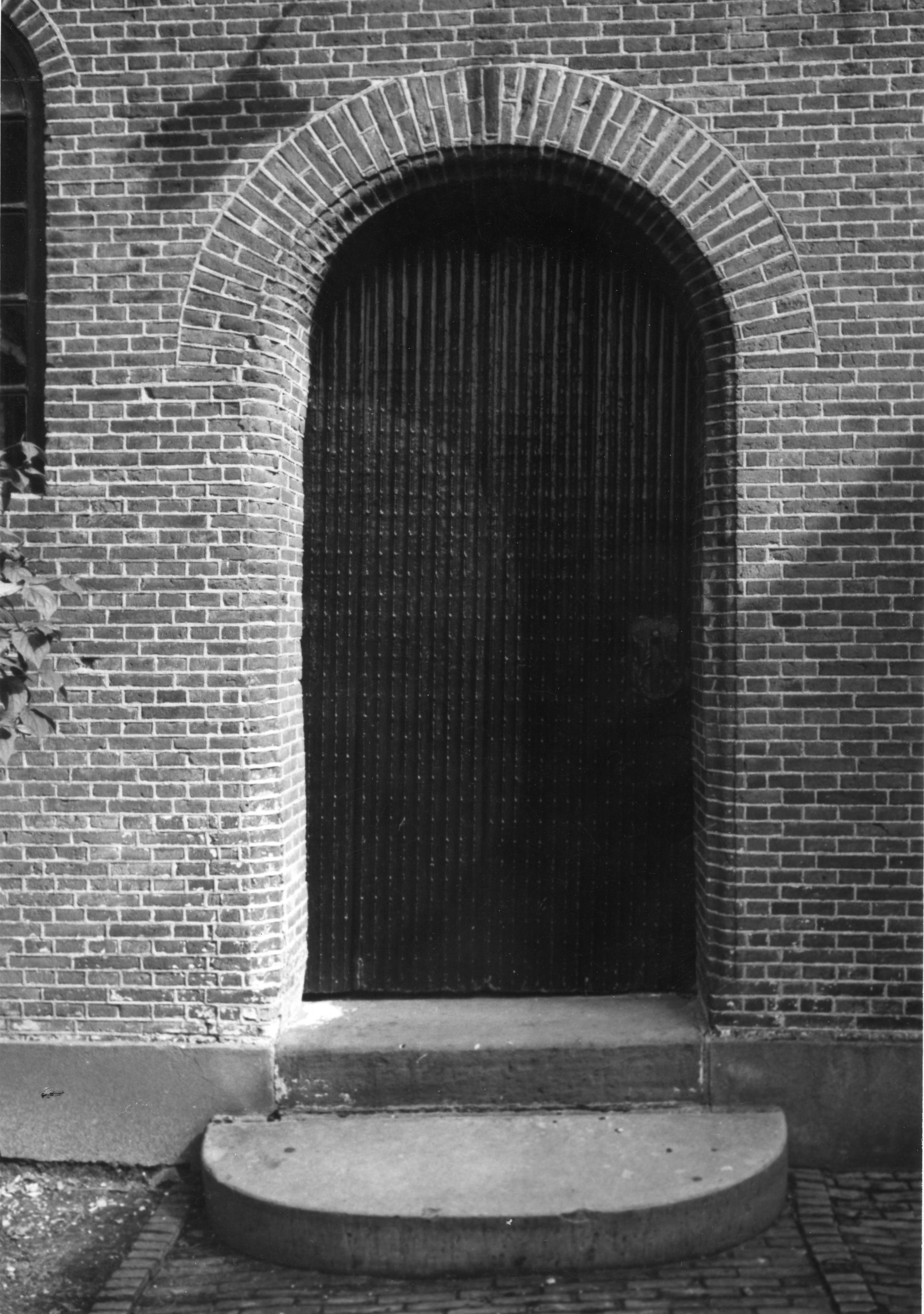 Deur van de doopgezinde kerk, Workum, 1944 (zwart-wi...