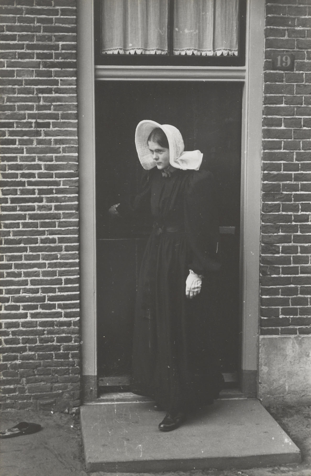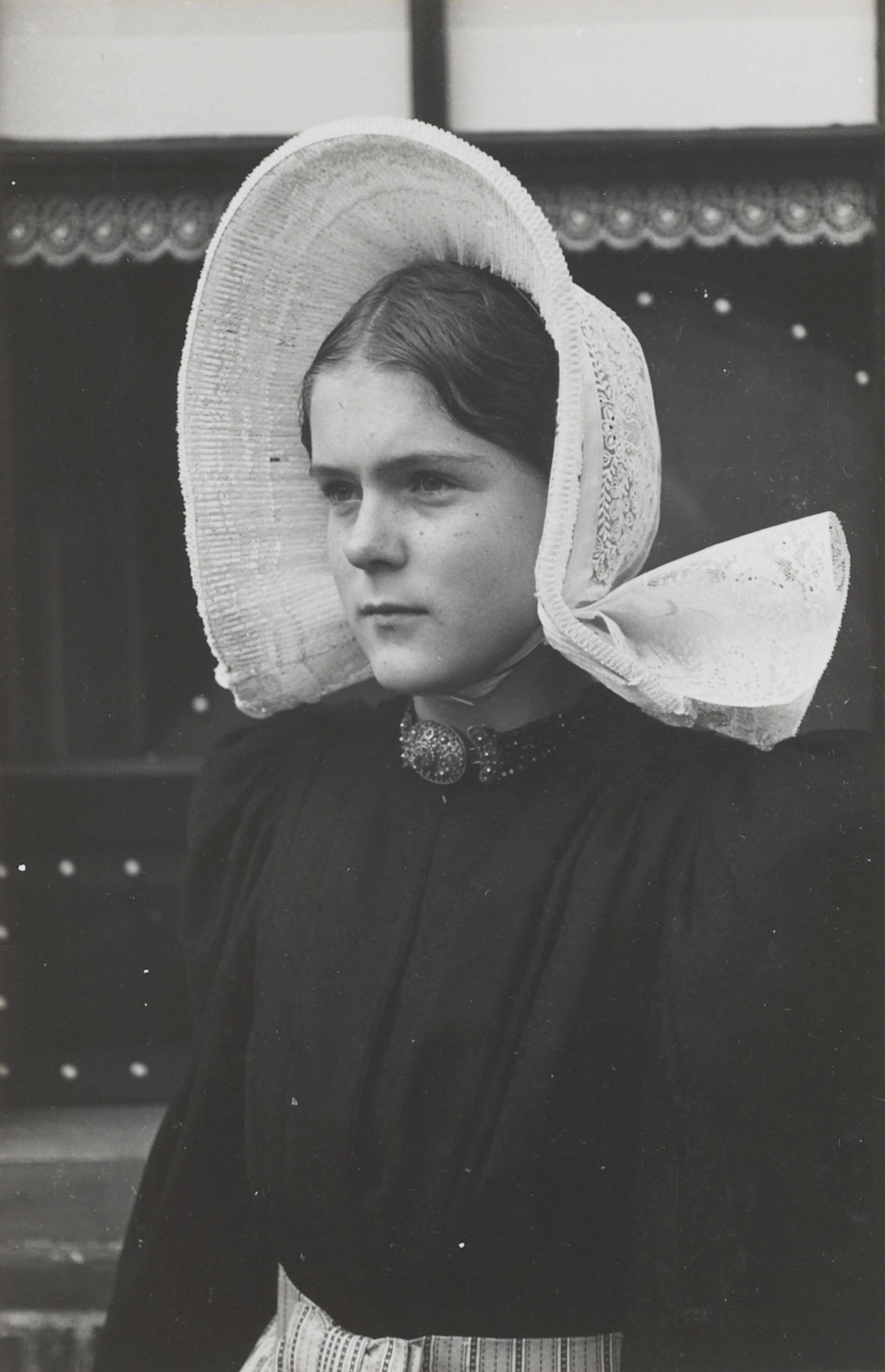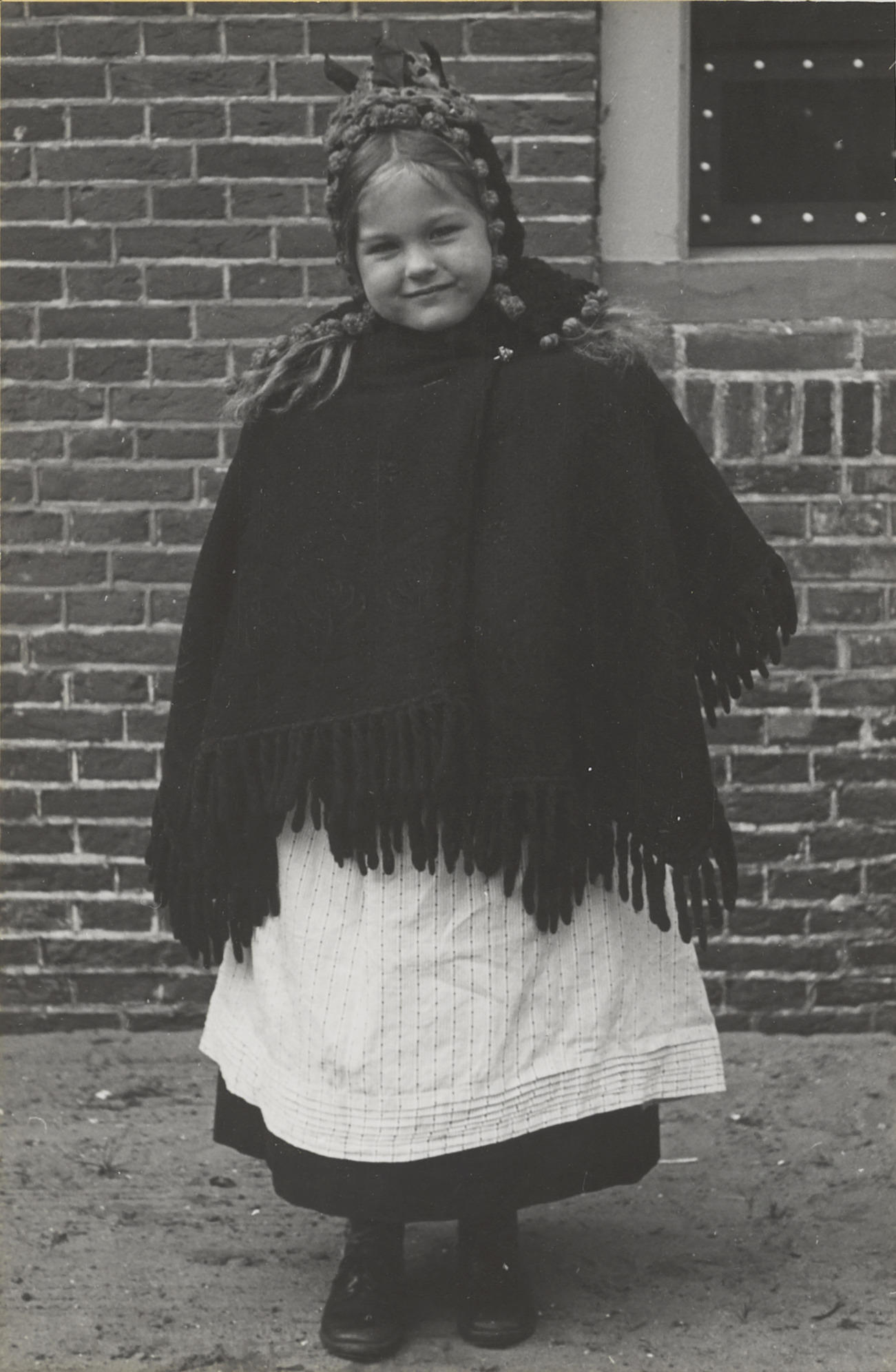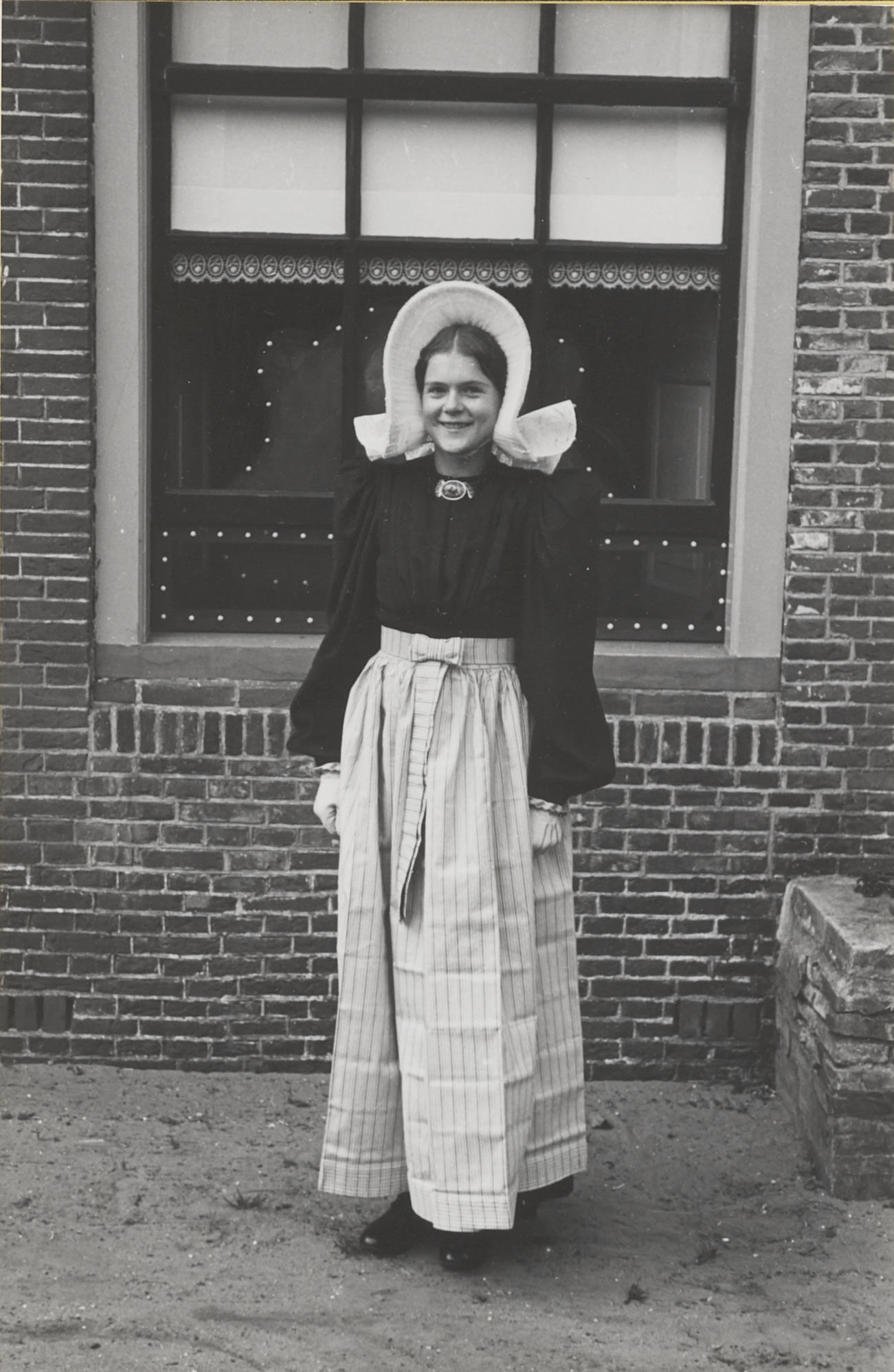Meisje verkleed in streekdracht, Huizen, 1945 (zwart...