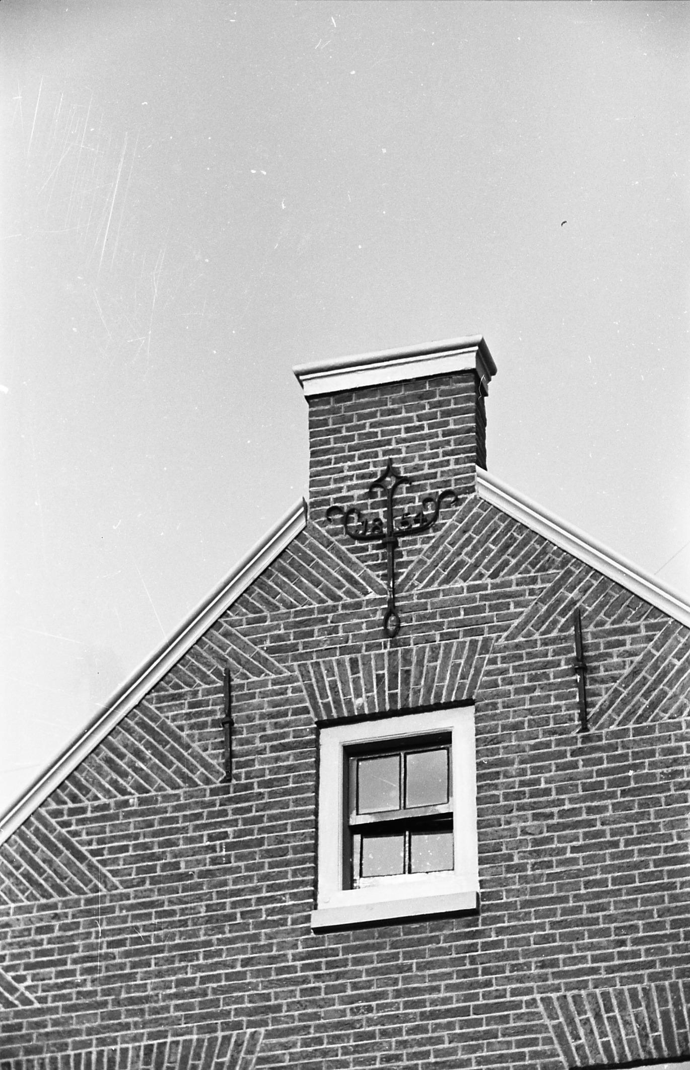Gevel met windveren en muuranker, Huizen, 1945 (zwar...