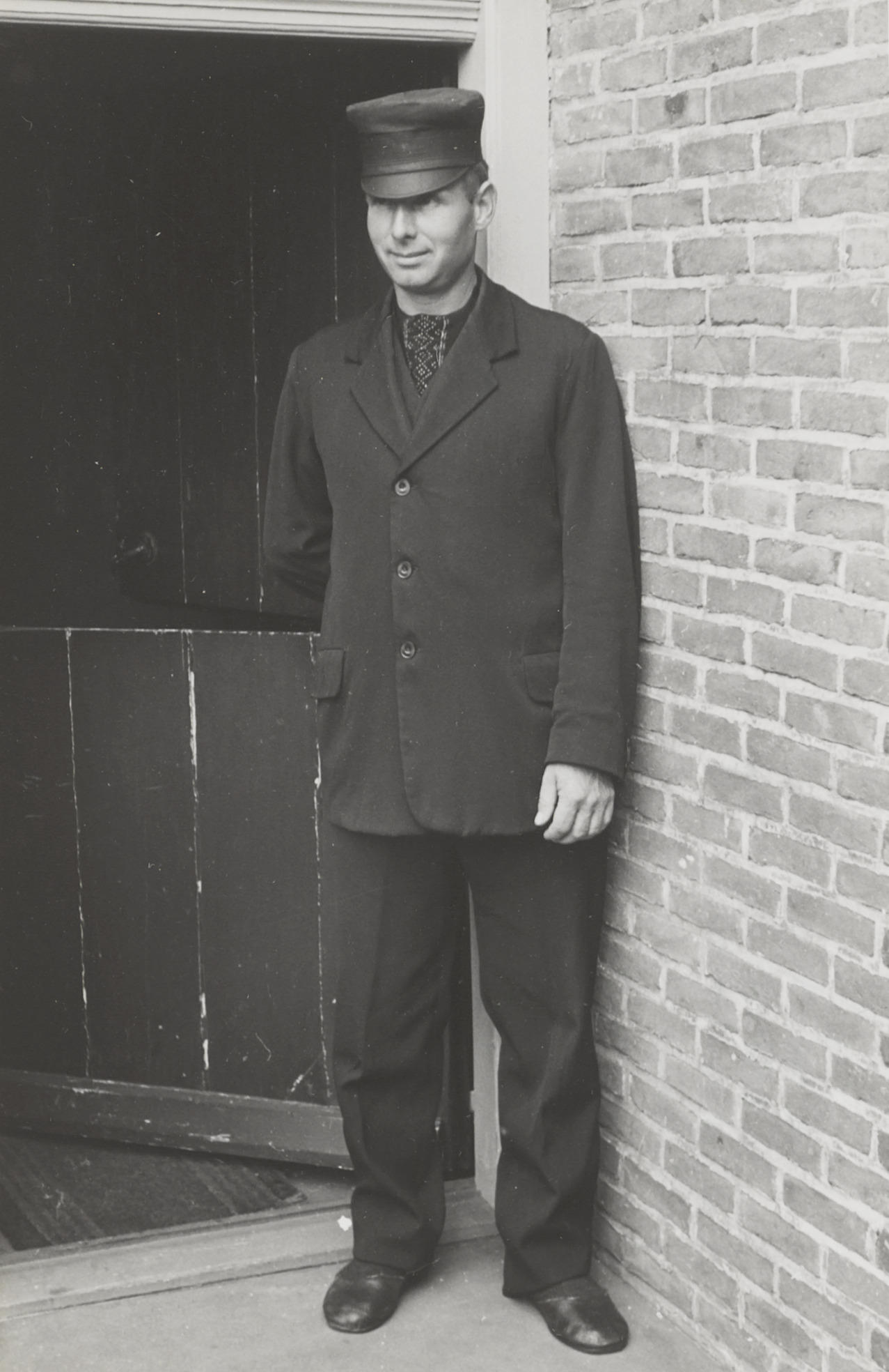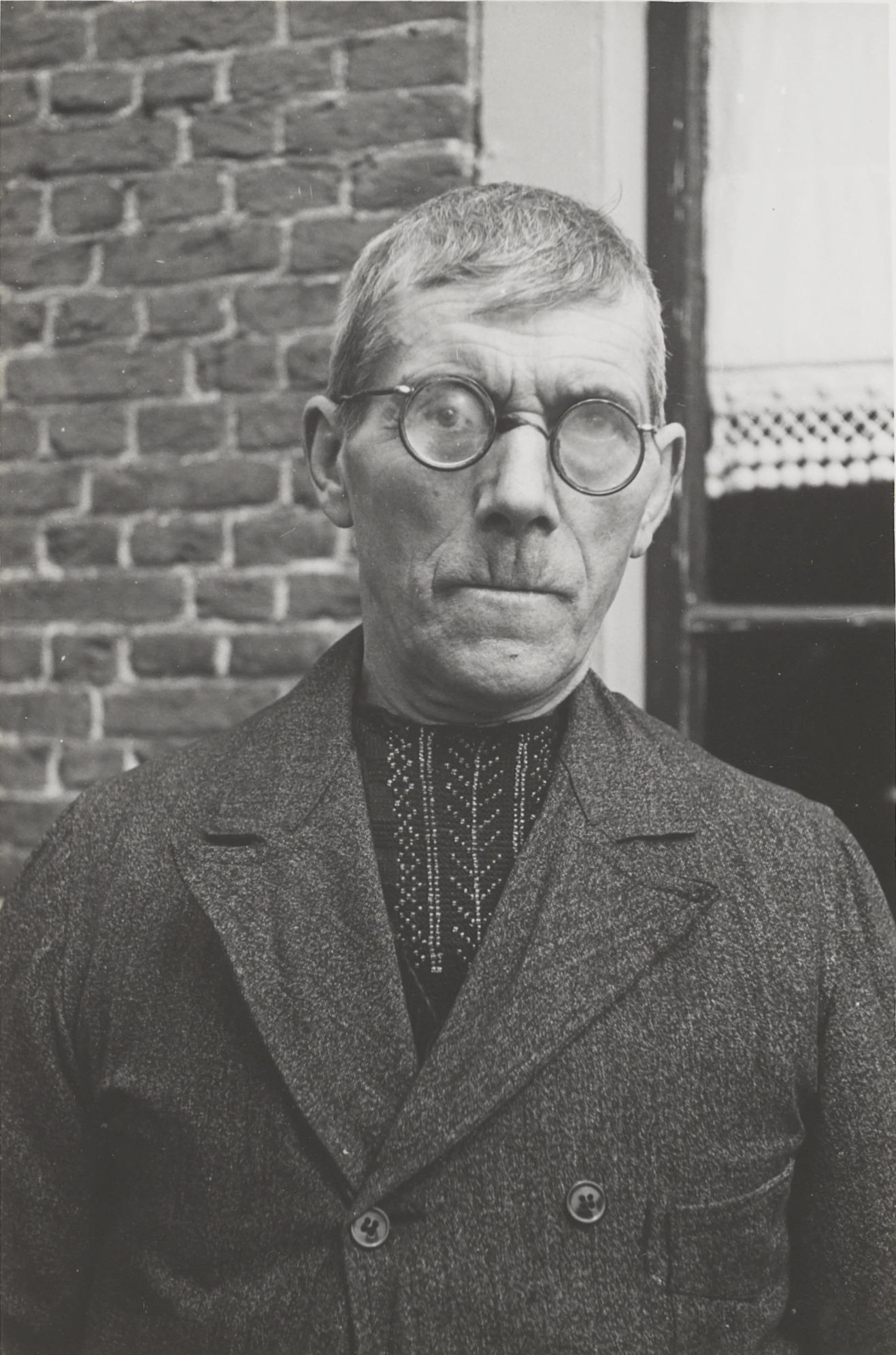 Man in streekdracht, Huizen, 1945 (zwart-wit foto)
