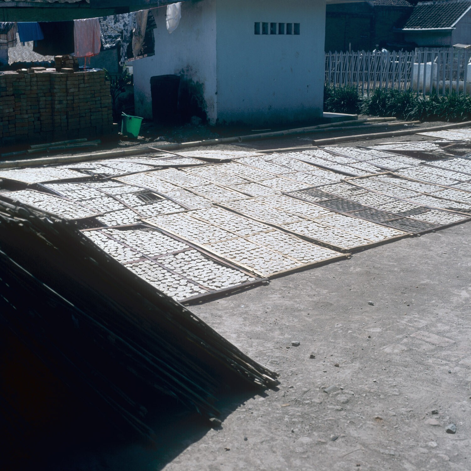 De kroepoek wordt gedroogd in de zon. Kroepoekfabrie...