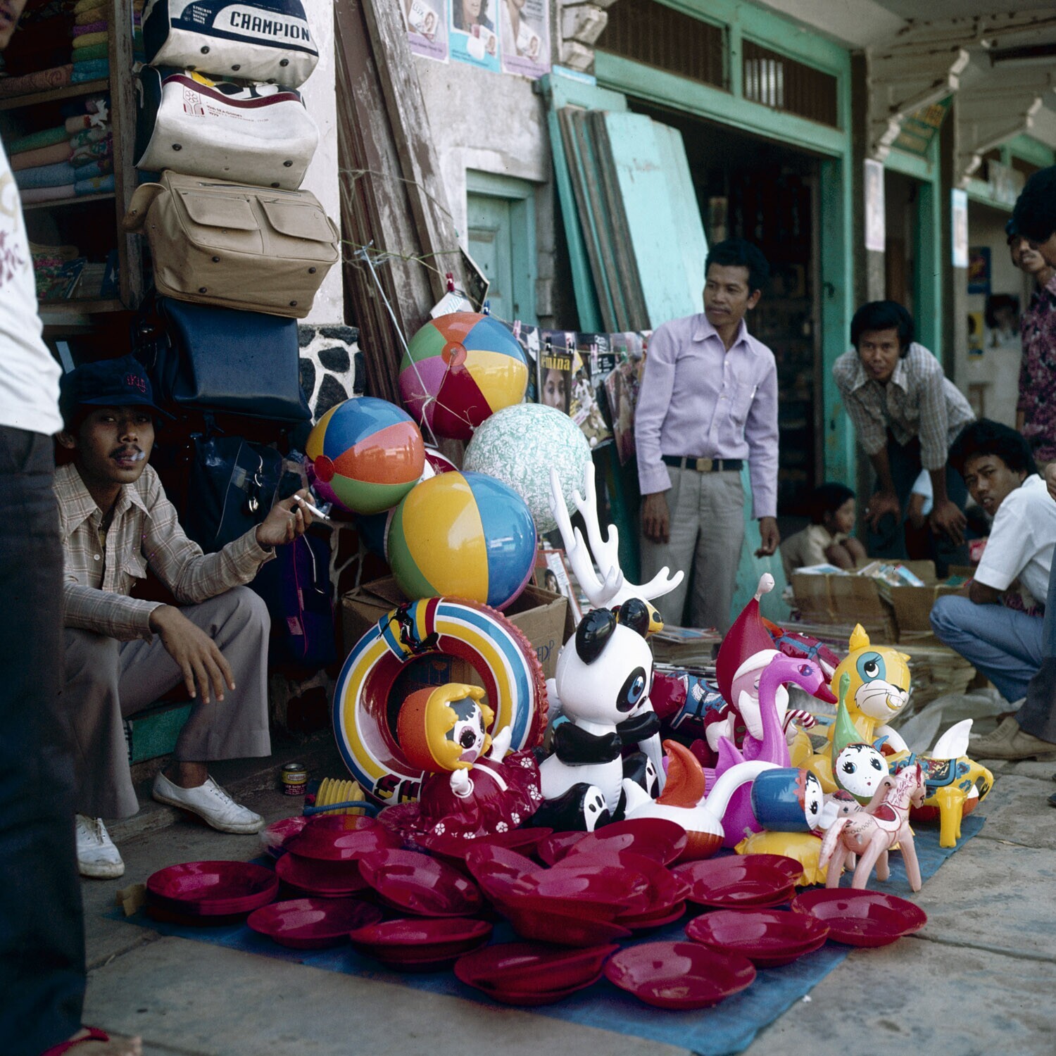 Plastic speelgoedverkoopster, Purwakarta.