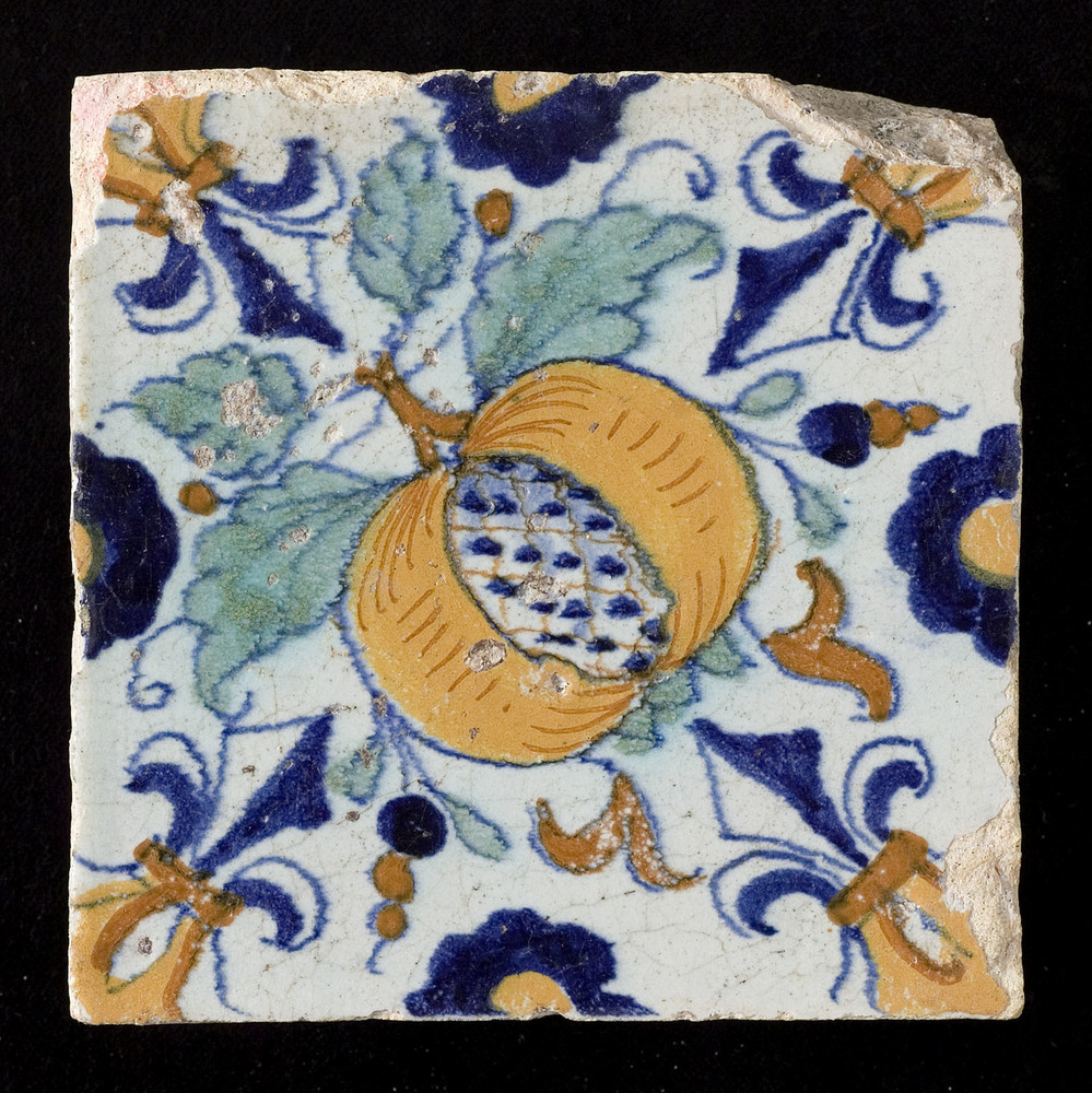 Tegel van keramiek met tinglazuur, voorstellende: or...