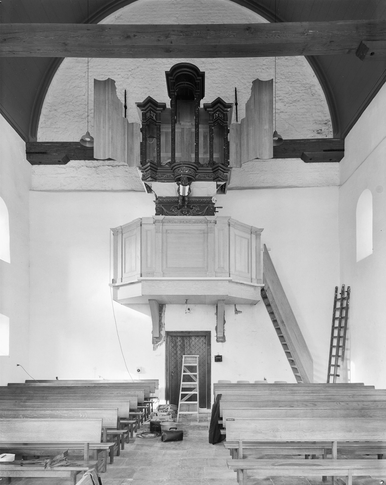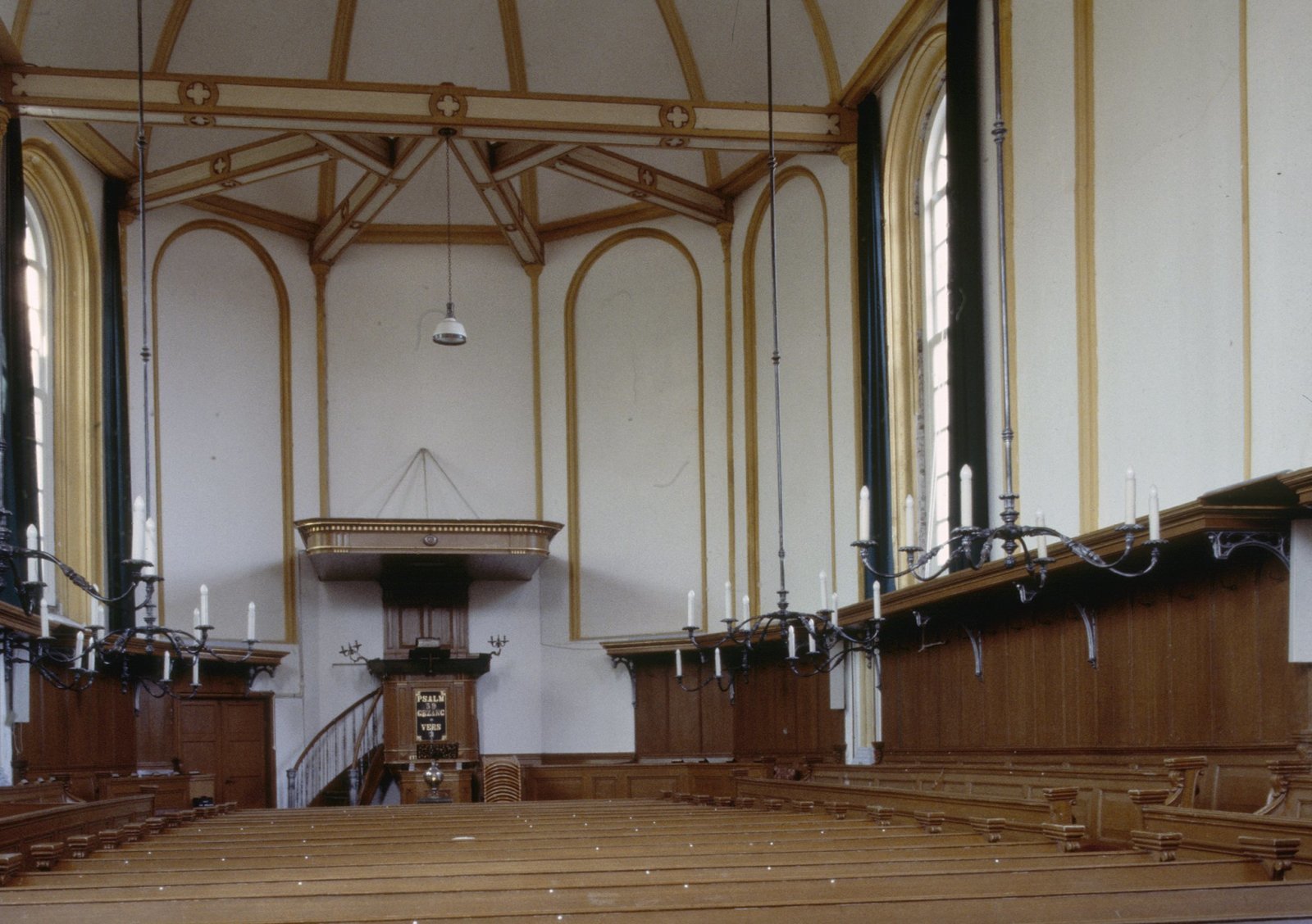 Interieur, kerk in de steigers - sloop van grafmonum...