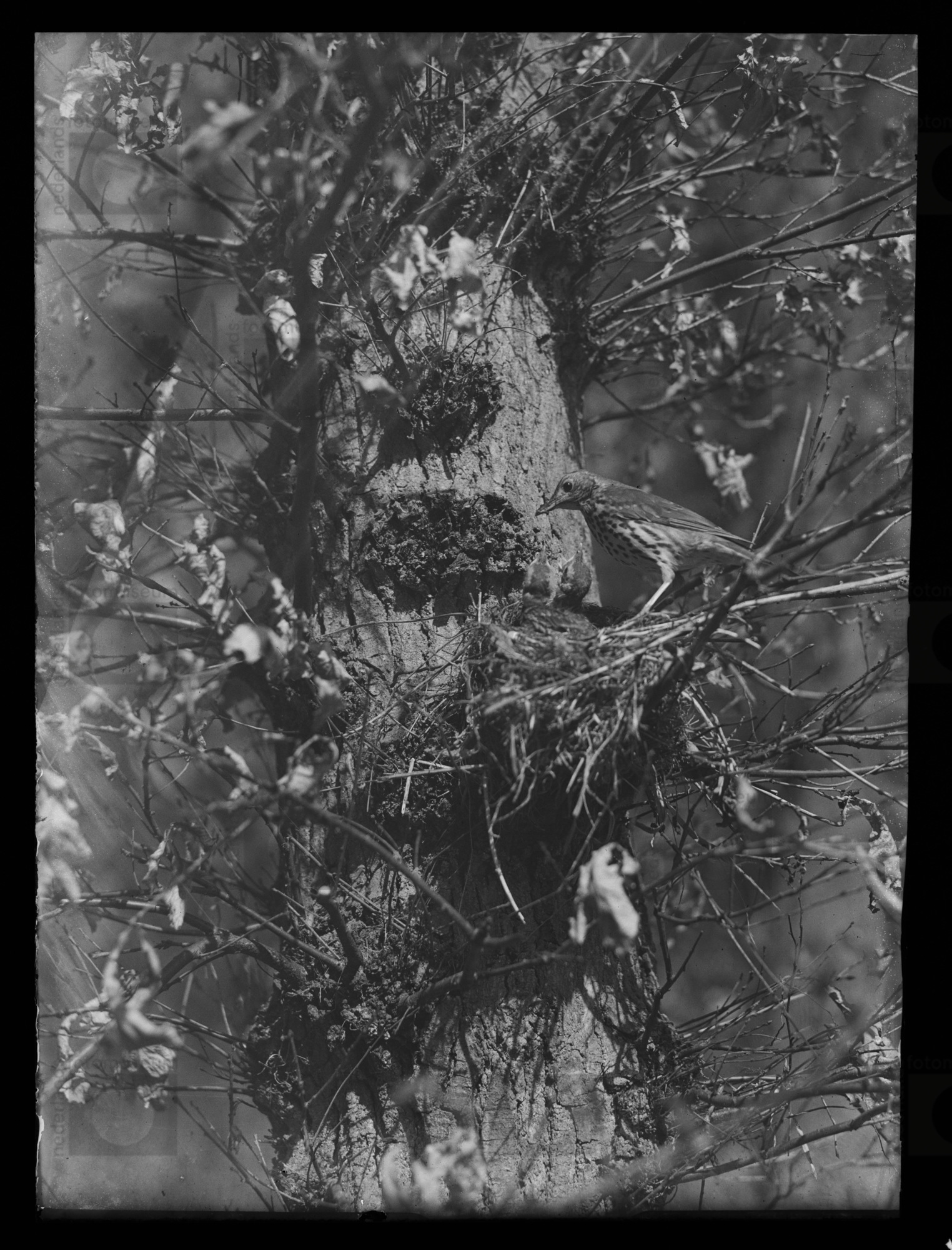 Zanglijster bij nest met jongen, Leyduin, Vogelenzan...