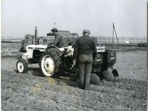 Foto in zwart-wit van het aardappelkweekbedrijf ZPC ...