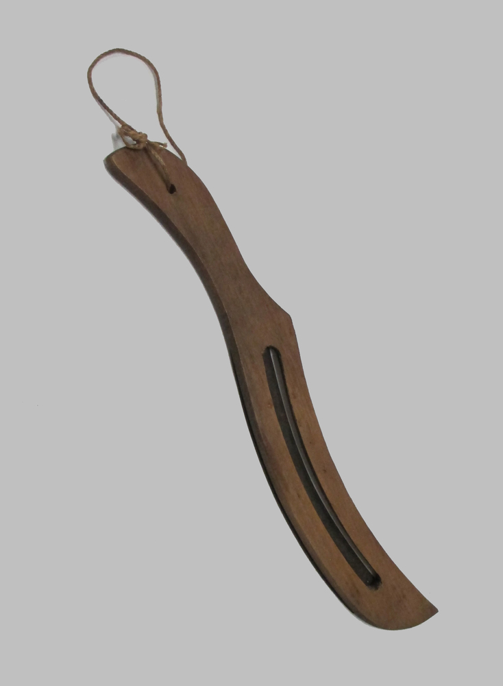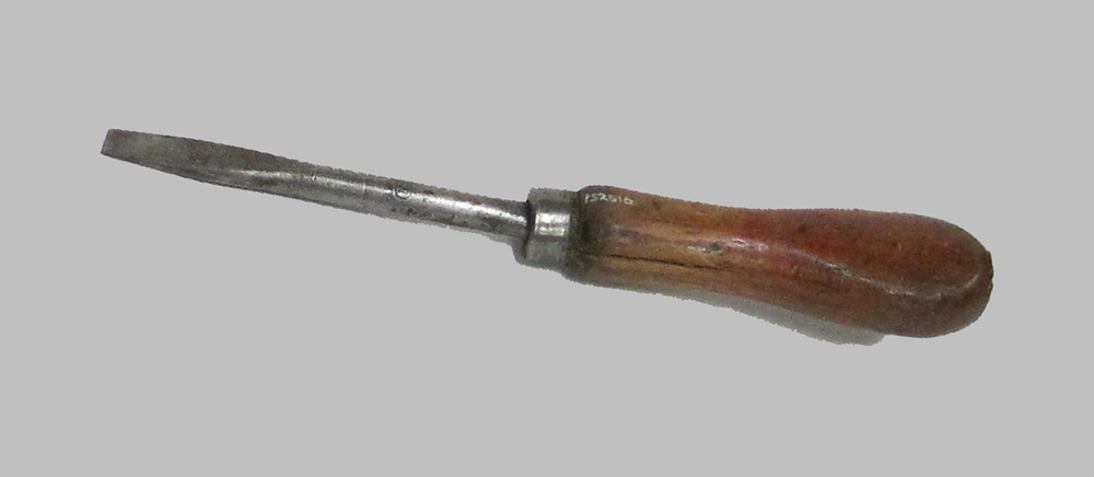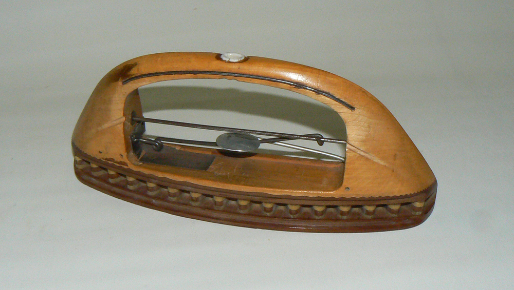 Plooi-ijzer van staal met een houten handvat, uit 1930