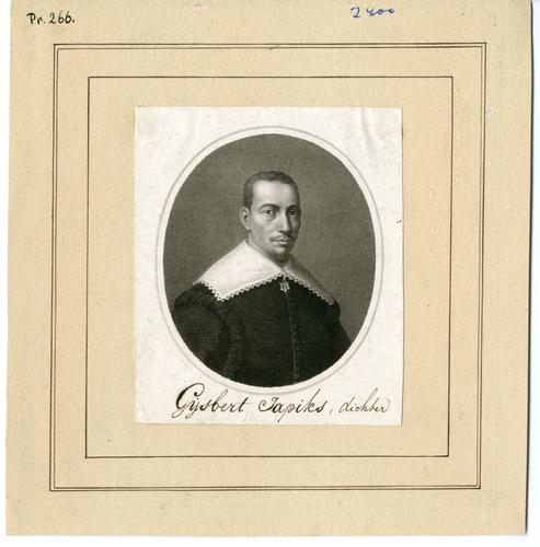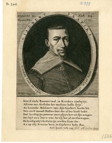 Portretgravure van Gysbert Japicx met Fries gedicht