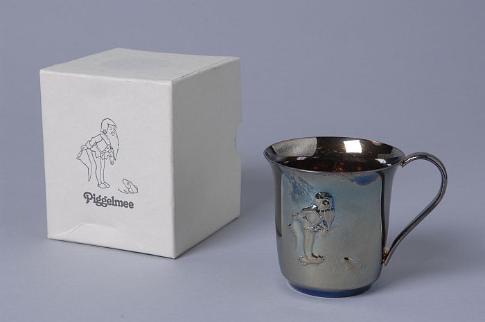 Verzilverde theebeker met ingegraveerde Piggelmee