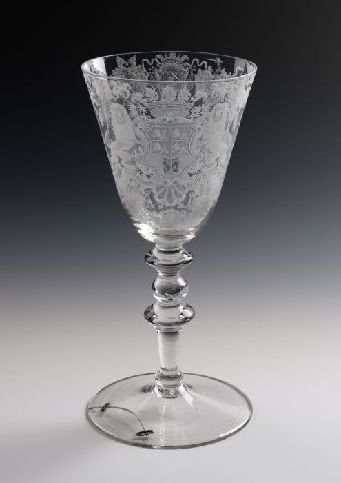 Glazen bokaal met de wapens van Rotterdam en het amb...