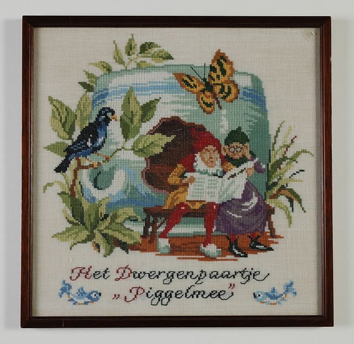 Ingelijst borduurwerk Piggelmee "Het dwergenpaartje"